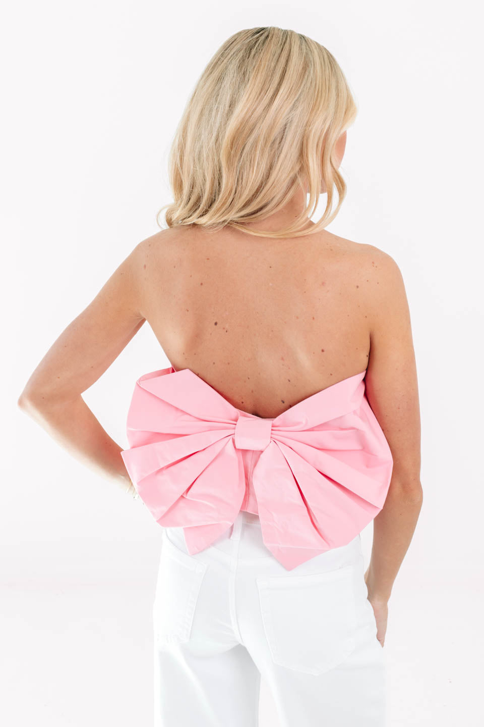This adorable pink tube top is all about sweet and sassy vibes, featuring a structured front that keeps it chic and a dramatic bow in the back for a flirty surprise. Perfect for brunch dates, rooftop parties, or whenever you want to feel effortlessly cute. Pair it with high-waisted jeans or a flowy skirt, and get ready to turn heads!