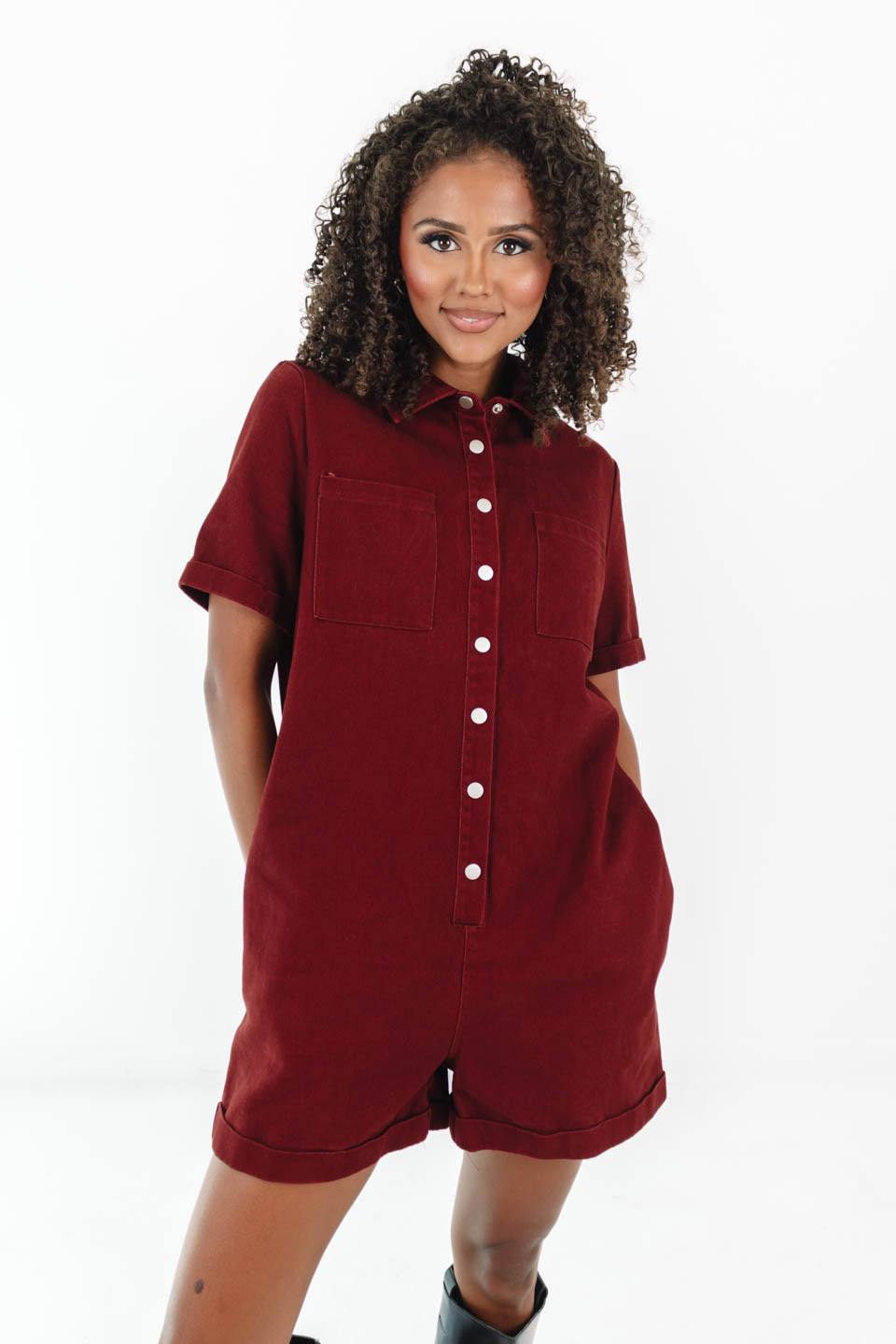 Fall Breeze Romper - Burgundy
