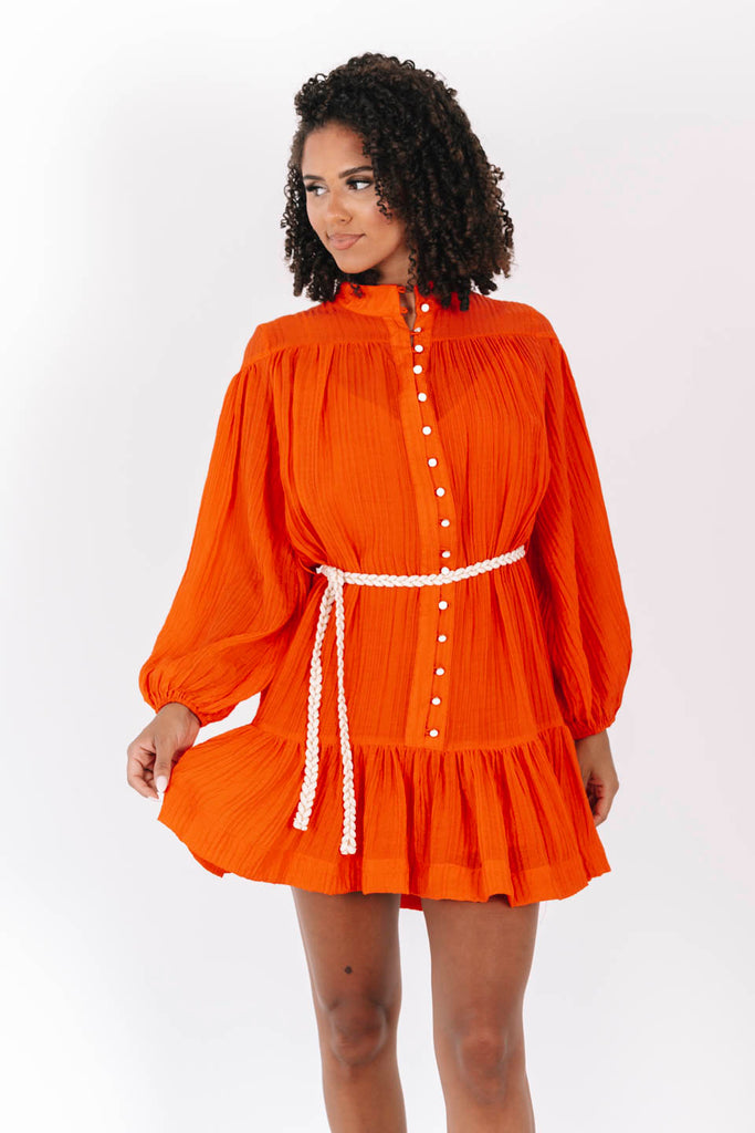 The Aubrey Belted Button Up Midi Dress - Burnt Orange