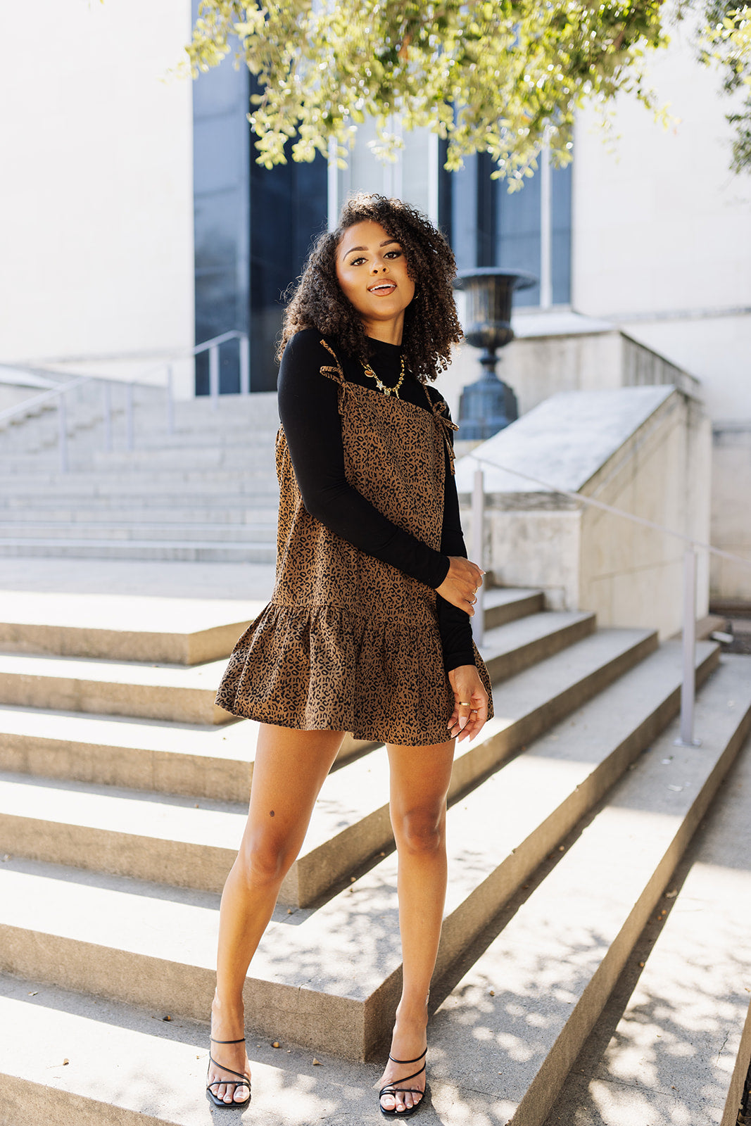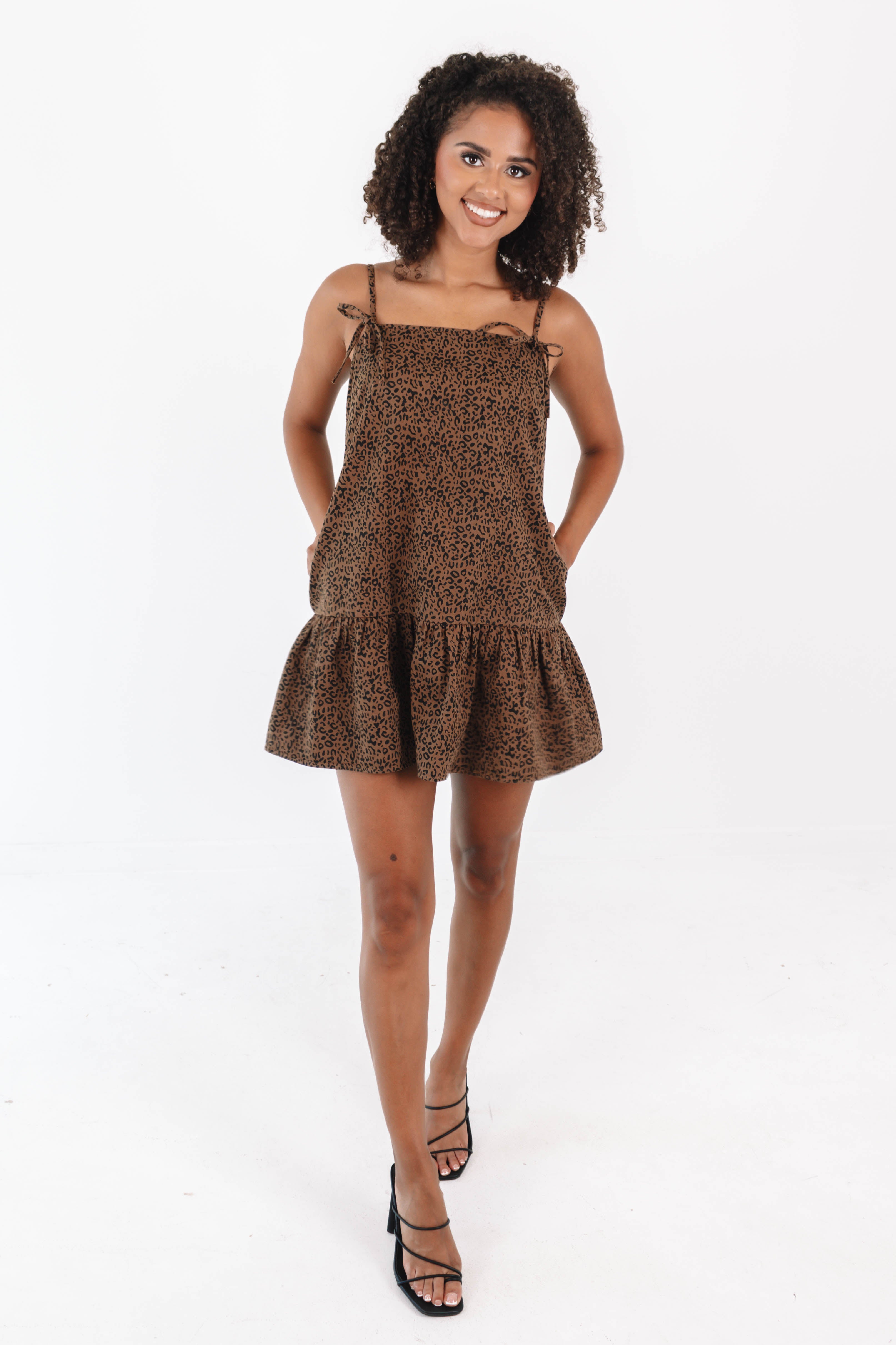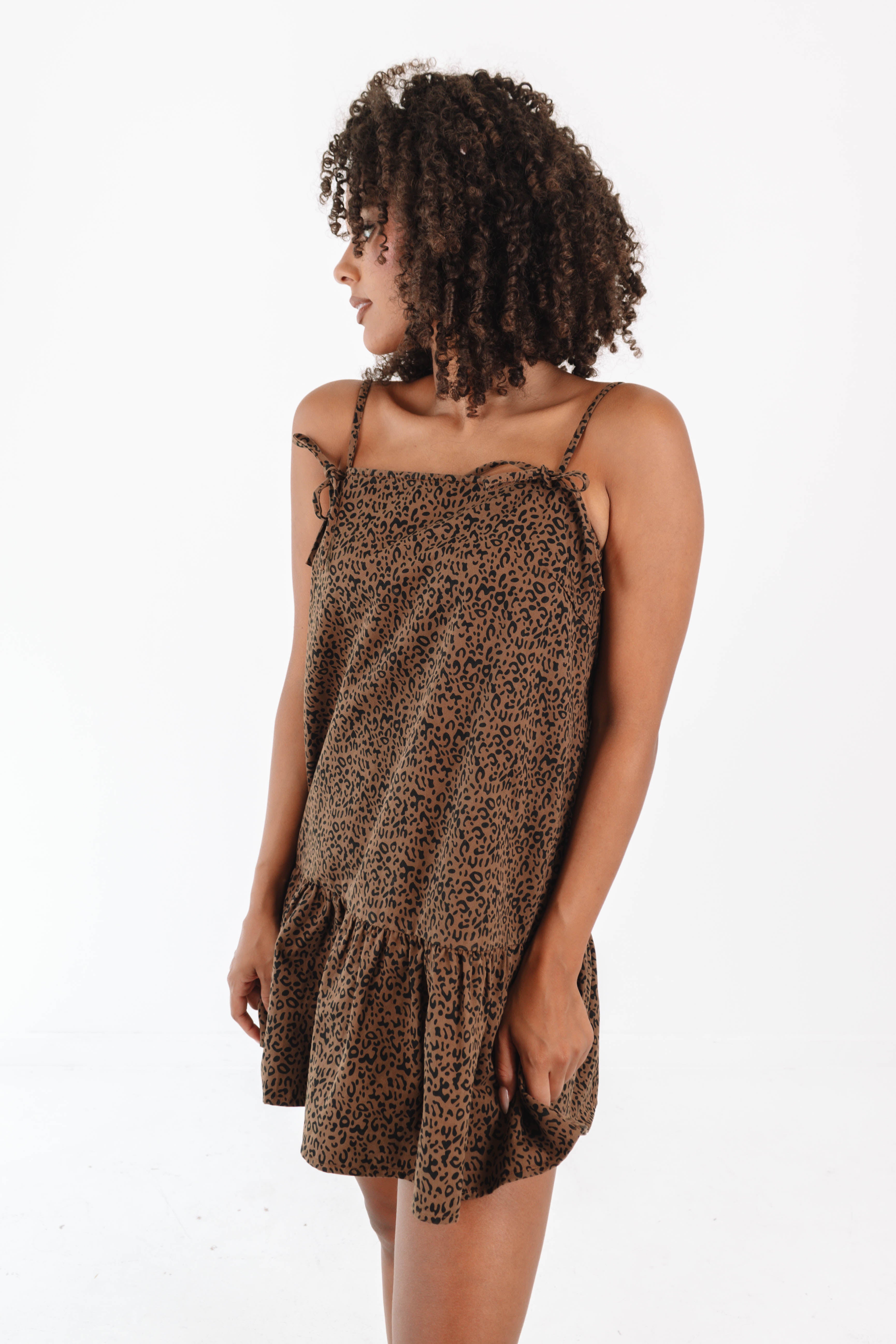 This leopard print dress with little bow details is a fierce yet flirty fashion statement. The bold, wild pattern brings out your inner diva, while the delicate bows add a playful, feminine touch. It's the perfect mix of edgy and cute, making sure all eyes are on you wherever you go!