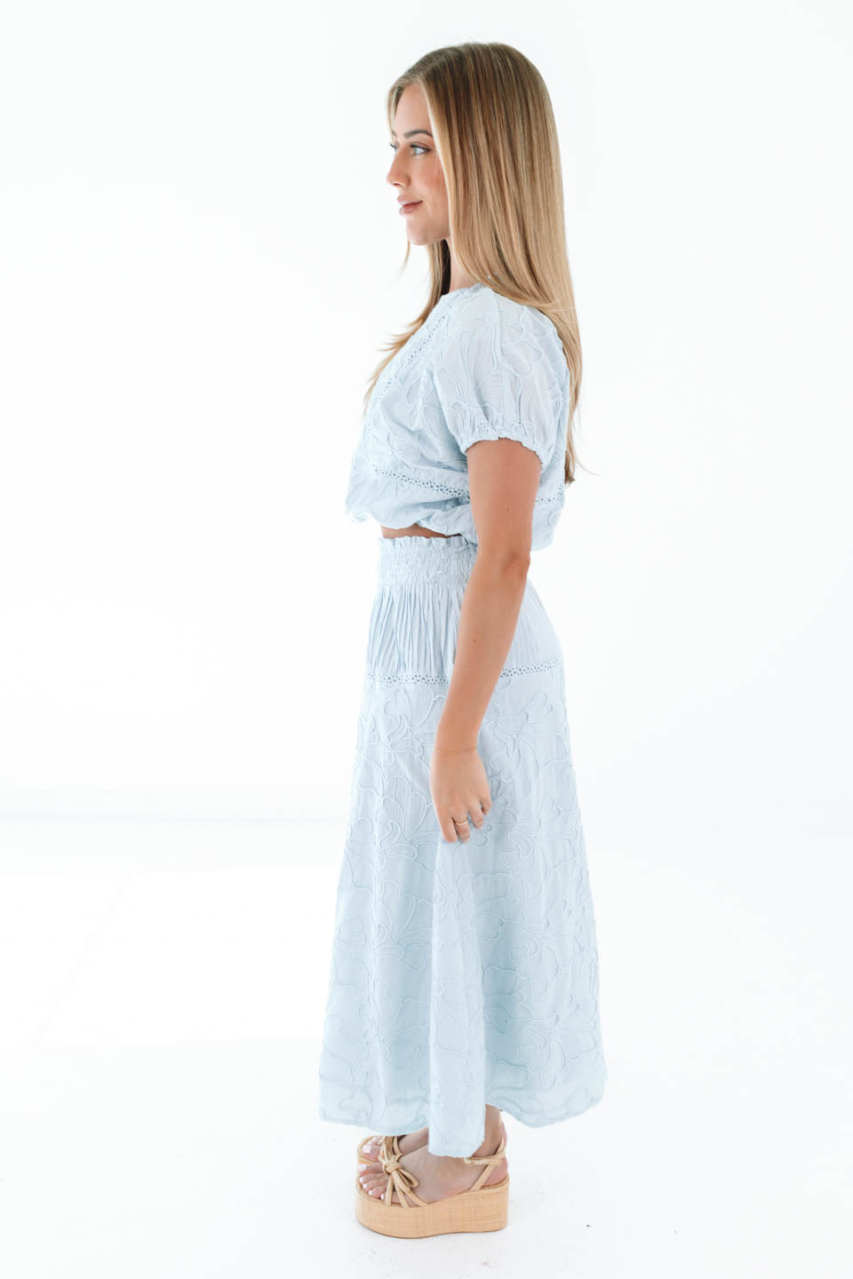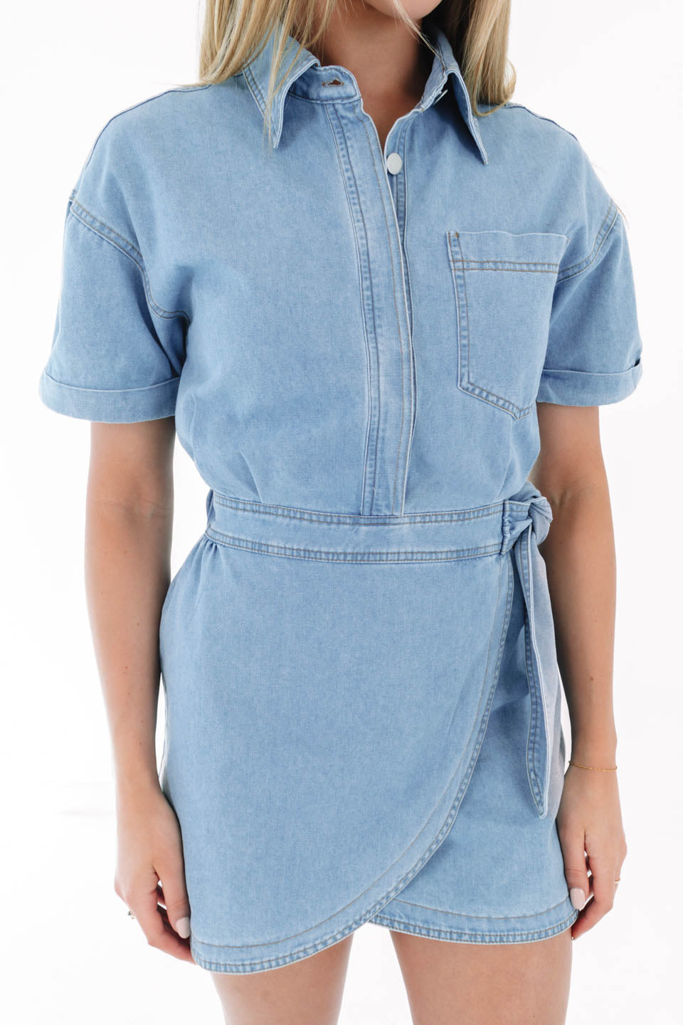 The Calypso Ruffle Button Up Dress - Blue Stripe