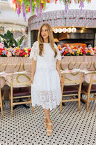 This breezy midi skirt is all about effortless charm with its flowy silhouette and delicate eyelet detailing along the hem. The comfy elastic waistband with a sweet ruffle trim makes it as easy to wear as it is to love. Dress it up with heels or keep it cool with sneakers for that perfectly playful, everyday vibe.