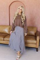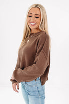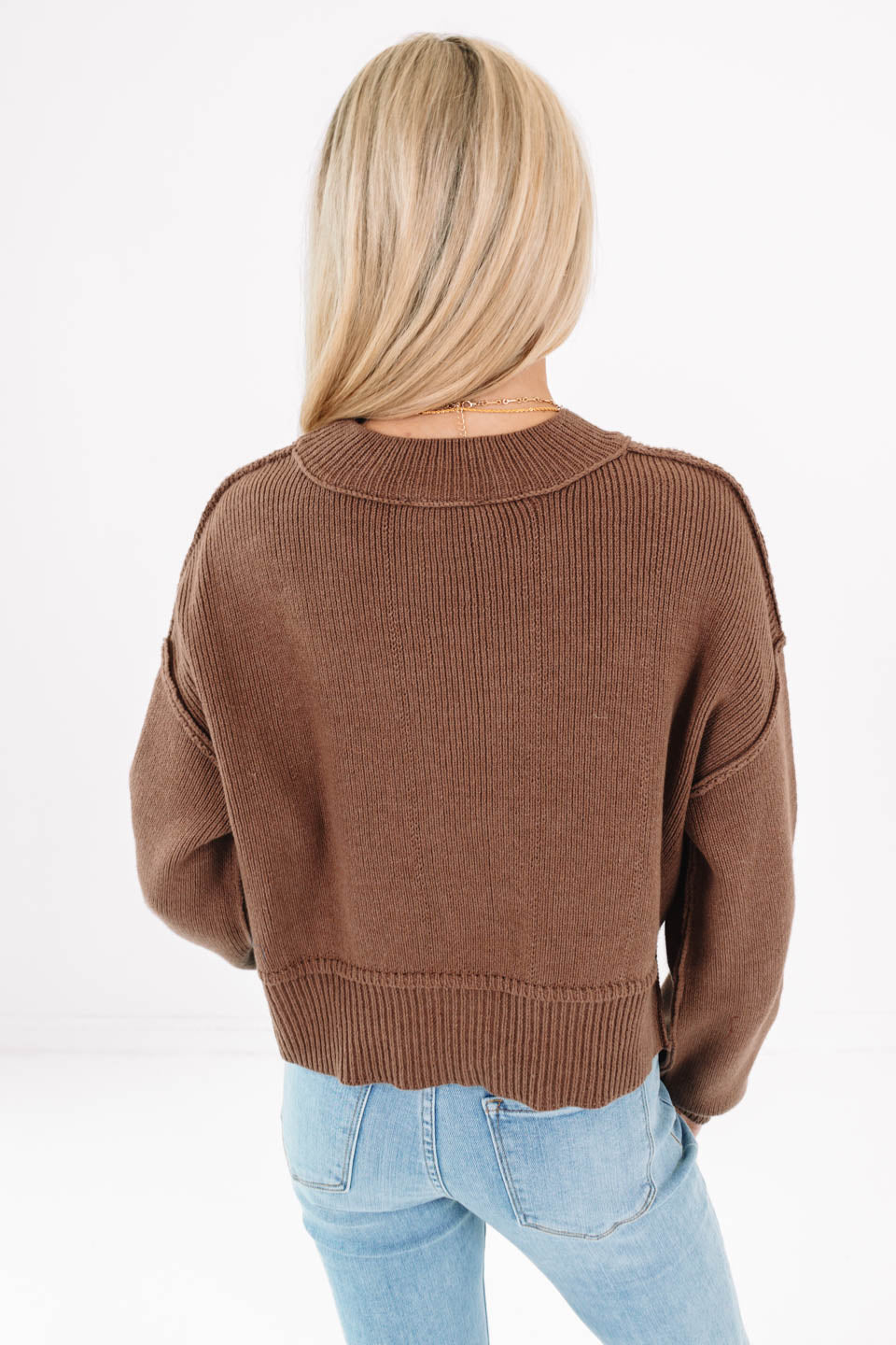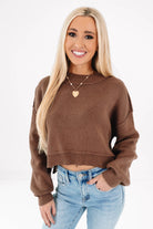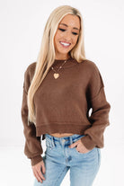 This cozy cropped sweater is serving up major fall vibes in the dreamiest brown hue. With its relaxed fit and balloon sleeves, it’s effortlessly cool while keeping you snug. Pair it with your favorite high-waisted jeans and get ready to conquer sweater weather in style!