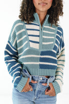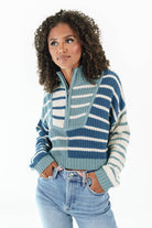 Candy Stripe Cropped Sweater - Teal