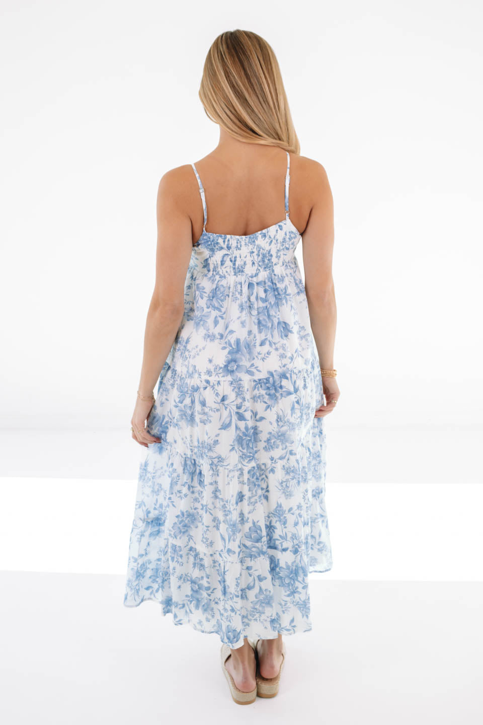 This charming white midi dress features a delicate blue floral print and adjustable spaghetti straps for a flattering fit. The standout bow adds a touch of playful elegance, while the pockets add both style and practicality. Perfect for a warm day or a laid-back event, this dress combines comfort and femininity effortlessly!