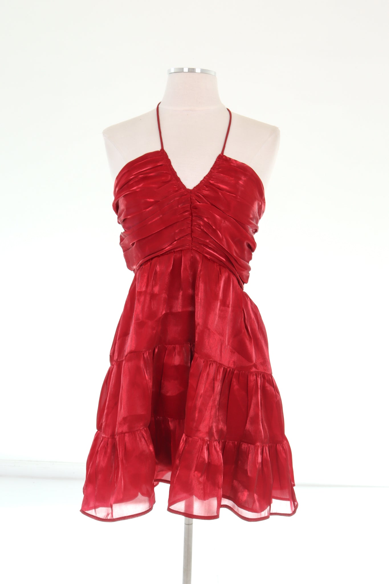 The Isla Puff Sleeve Tie Midi Dress - Green
