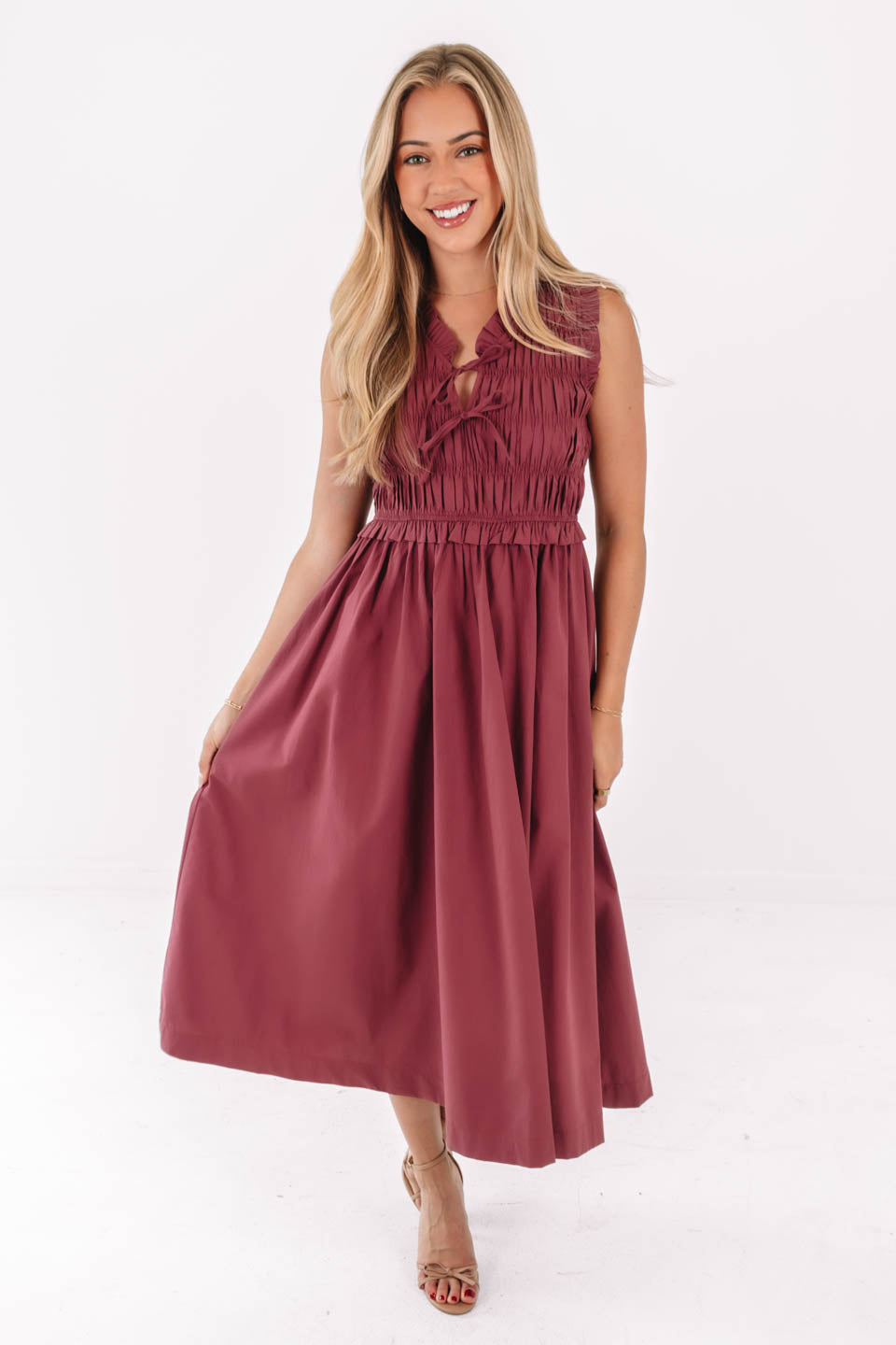 Tie The Knot Midi Dress - Maroon