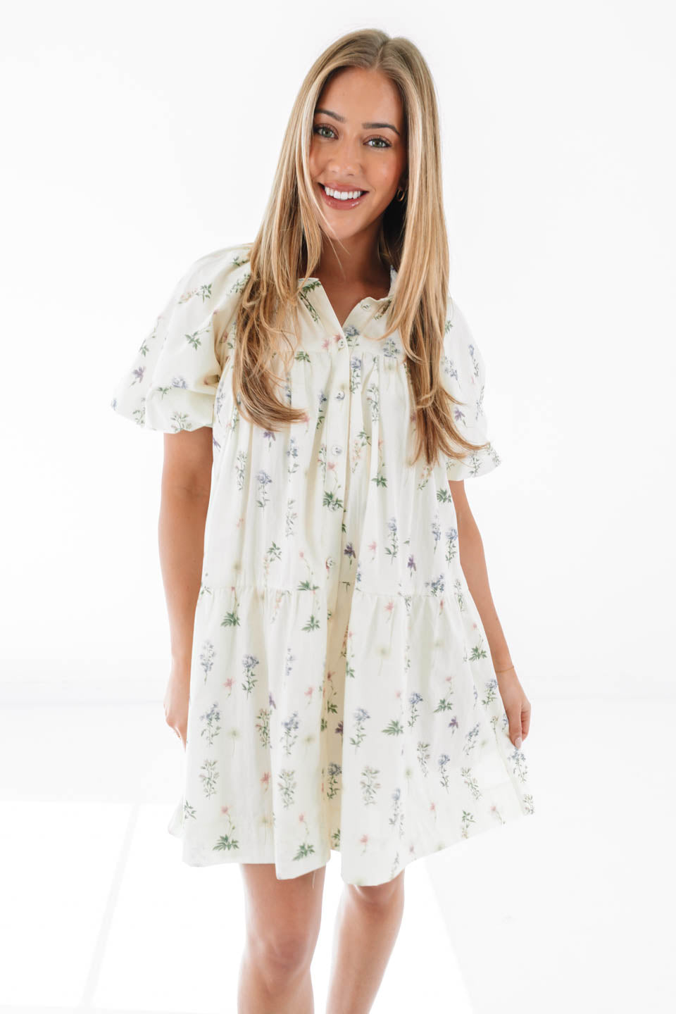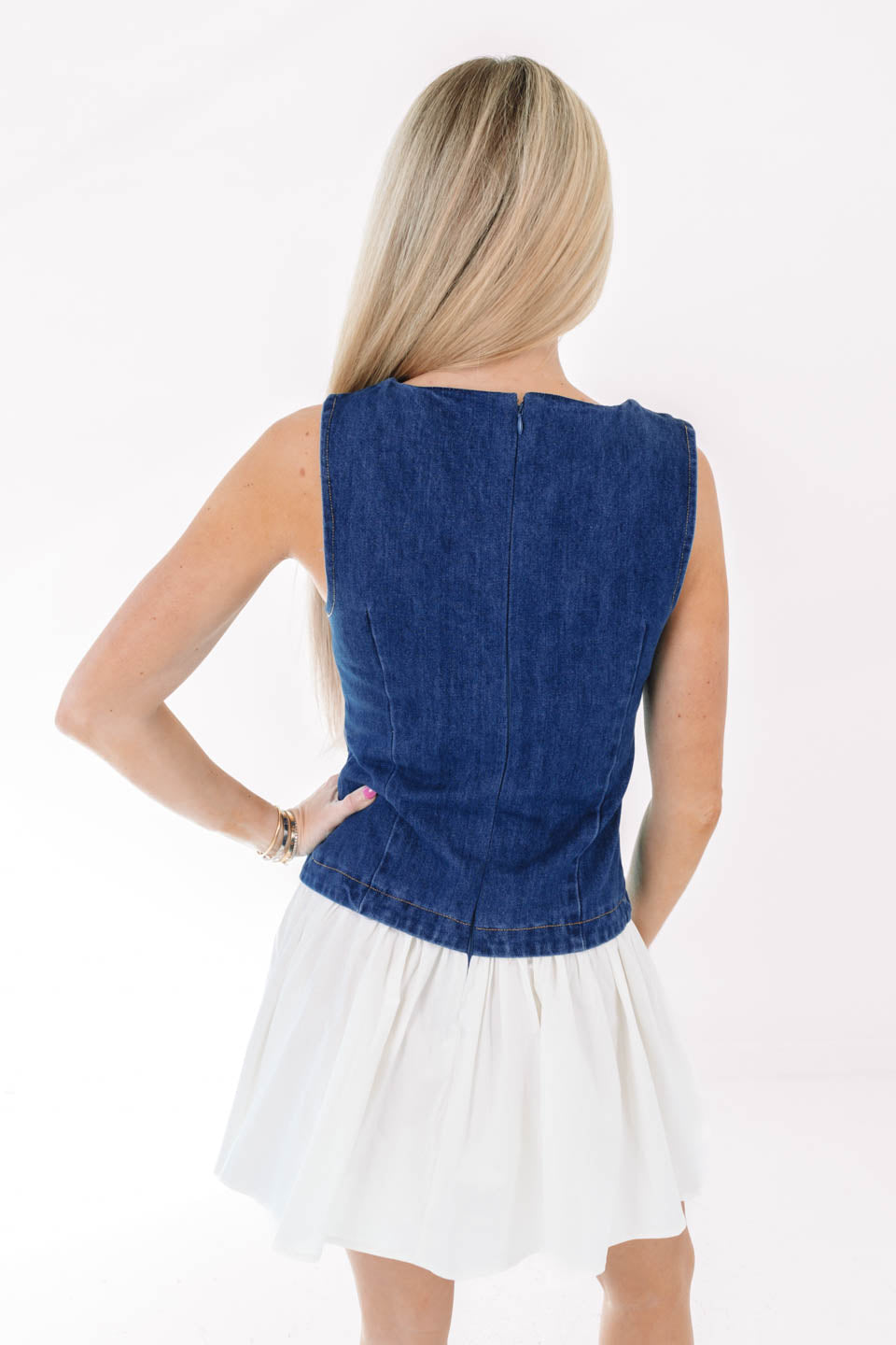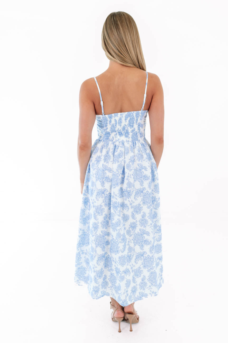 The Calypso Ruffle Button Up Dress - Blue Stripe