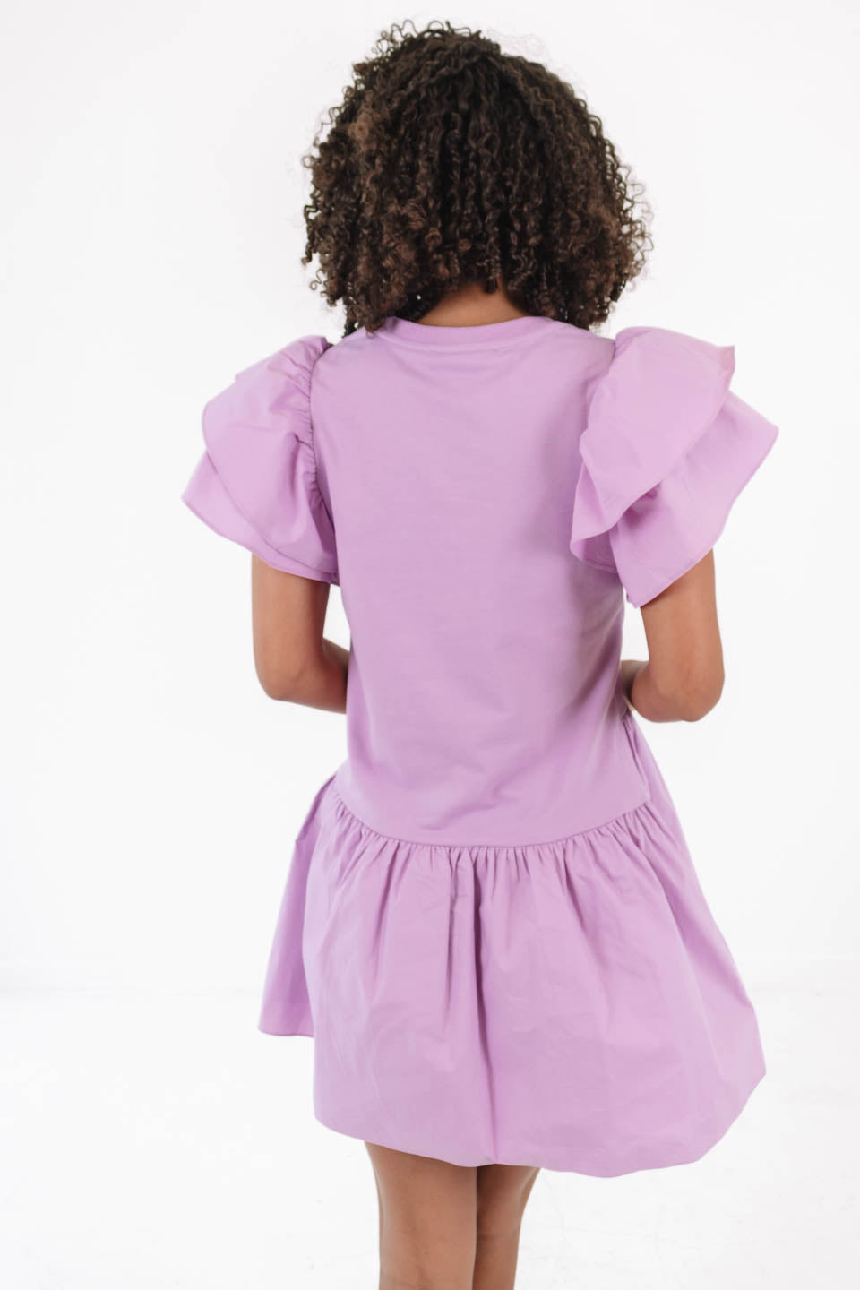 Turn heads and twirl with joy in this playful lavender ruffle dress — the ultimate combo of sweet and sassy! With dramatic flutter sleeves and a breezy tiered skirt, it's perfect for brunch dates or spontaneous dance parties. Just add your favorite sneakers for an effortlessly cute look that’s ready for anything!