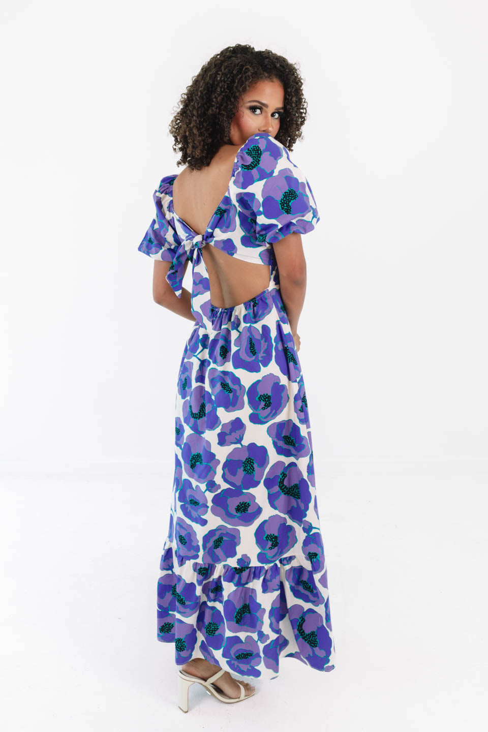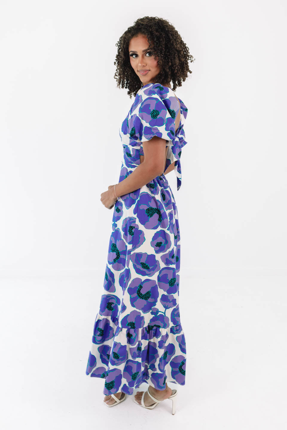 Twirl into the spotlight with this bold and beautiful floral stunner! Featuring puff sleeves, a sweetheart neckline, and a ruffled hem, this dress is a whole vibe for sunny days and garden soirées. The vibrant purple blooms practically dance with you—because why blend in when you can bloom big?