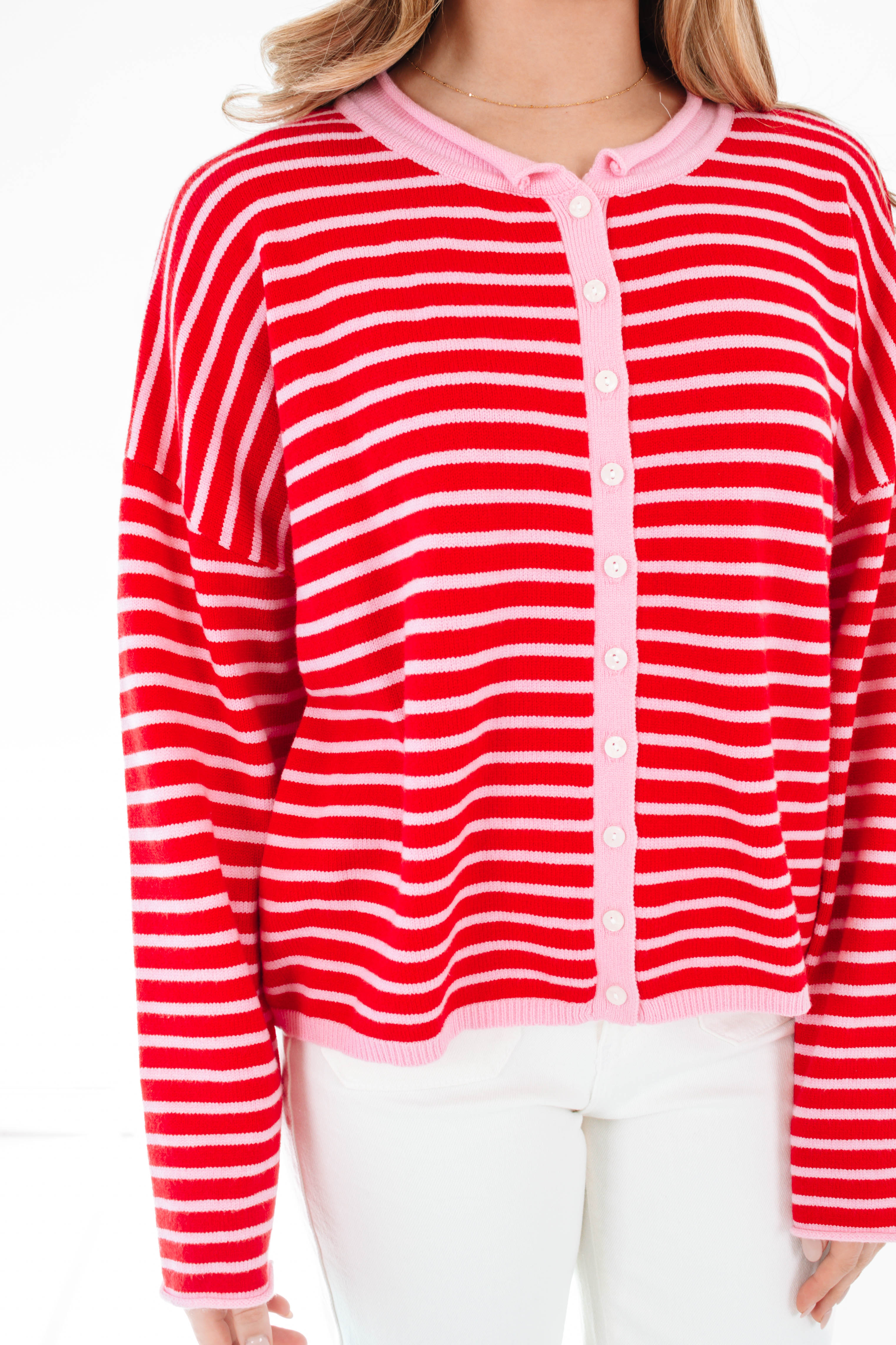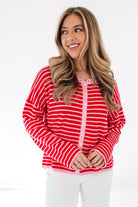 This sweater is pure fun with its bold red stripes and perfectly slouchy, wear-anywhere vibe! Soft, cozy, and lightweight, it’s the kind of throw-on piece that instantly makes an outfit pop. Add denim or a mini skirt and get ready to turn heads wherever you go!