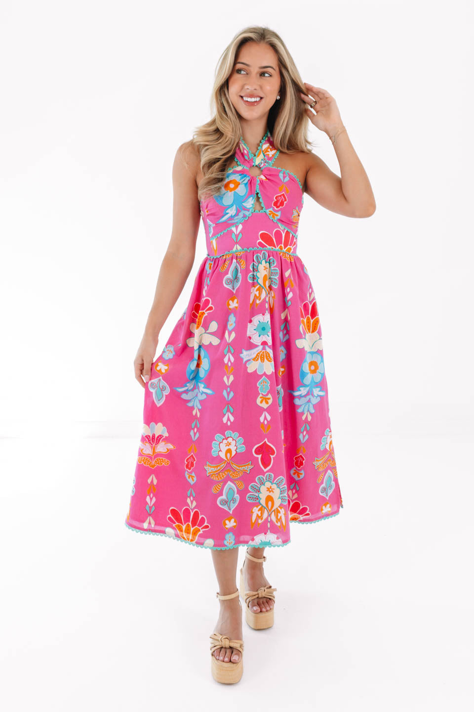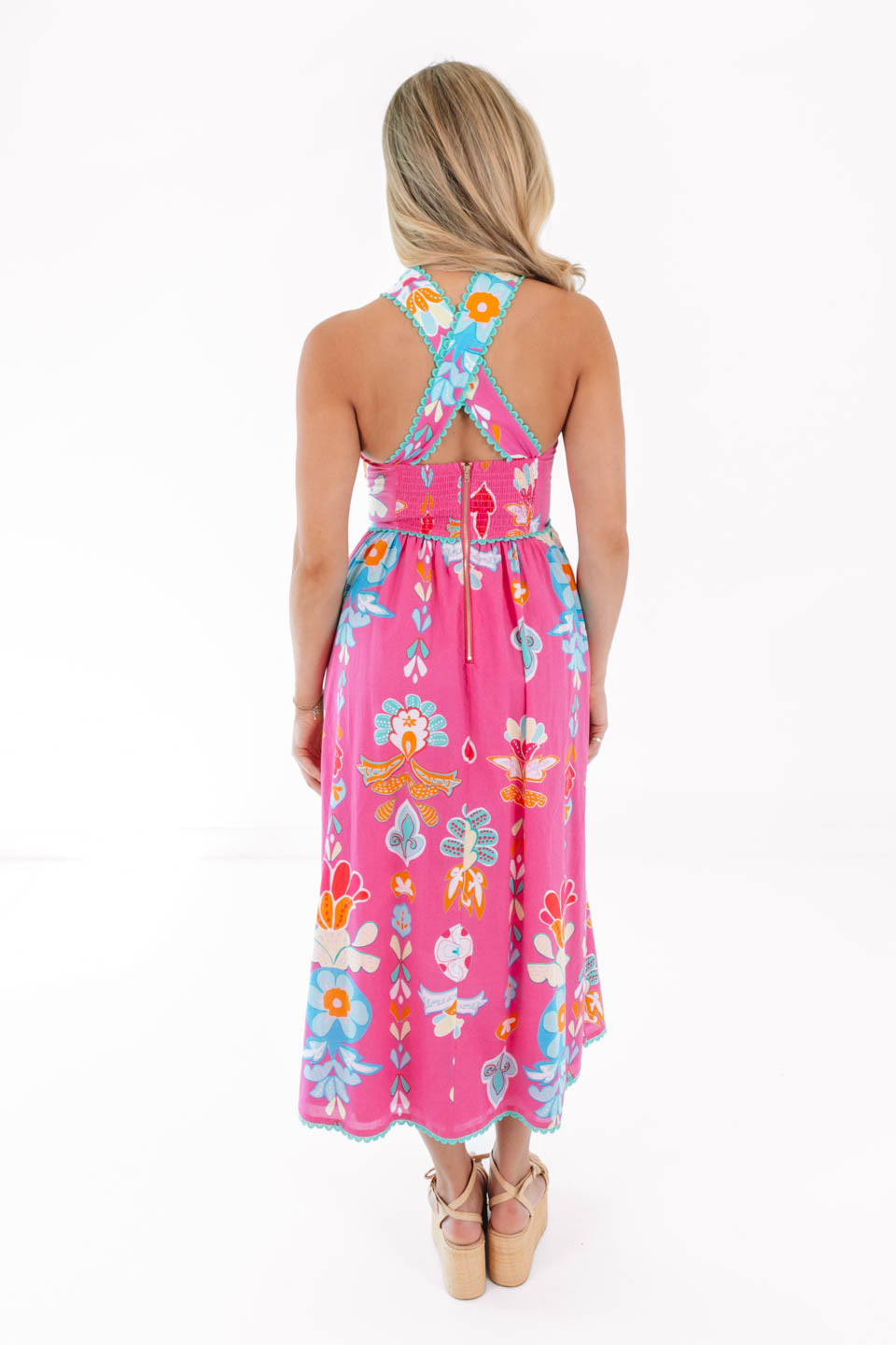 The Sailor Ric Rac Cross Midi Dress - Hot Pink