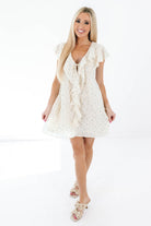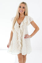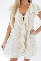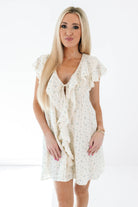 This sweet floral dress is all about soft romance with an easy, carefree feel. The flutter sleeves, delicate lace trim, and ruffled neckline add just the right amount of charm without trying too hard. Perfect for sunny afternoons, coffee dates, or anytime you want to feel effortlessly pretty.