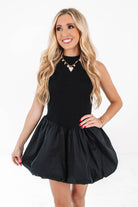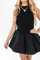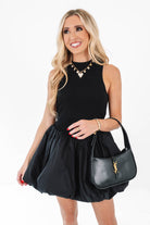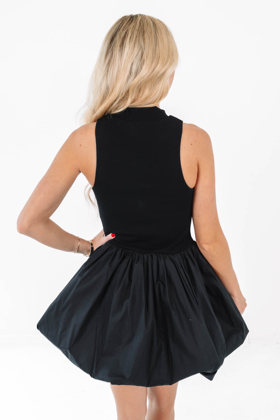 This bold black mini dress is serving major high-fashion drama with its structured bubble skirt and sleek mock-neck top! Perfect for making a statement, it pairs effortlessly with tall boots for a chic, runway-ready vibe. Who knew autumn tones could look this fierce?