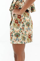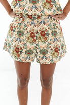 These high-waisted floral shorts are giving major retro-cool vibes with a modern twist. The bold print keeps things lively, while the breezy fit makes them perfect for warm-weather adventures. Pair them with the matching top for a set that’s as fun as it is chic!