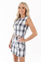 This cropped plaid top is giving major city vibes with a modern twist. The gold buttons add just the right pop of polish, making it perfect for dressing up or down. Sleek, chic, and ready to turn your everyday look into a total statement.