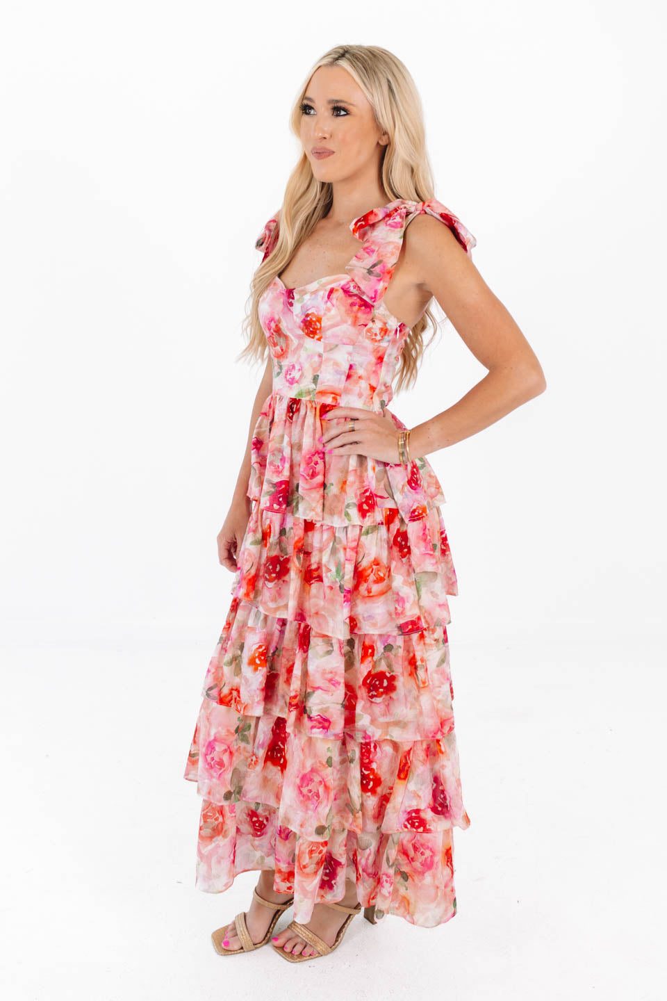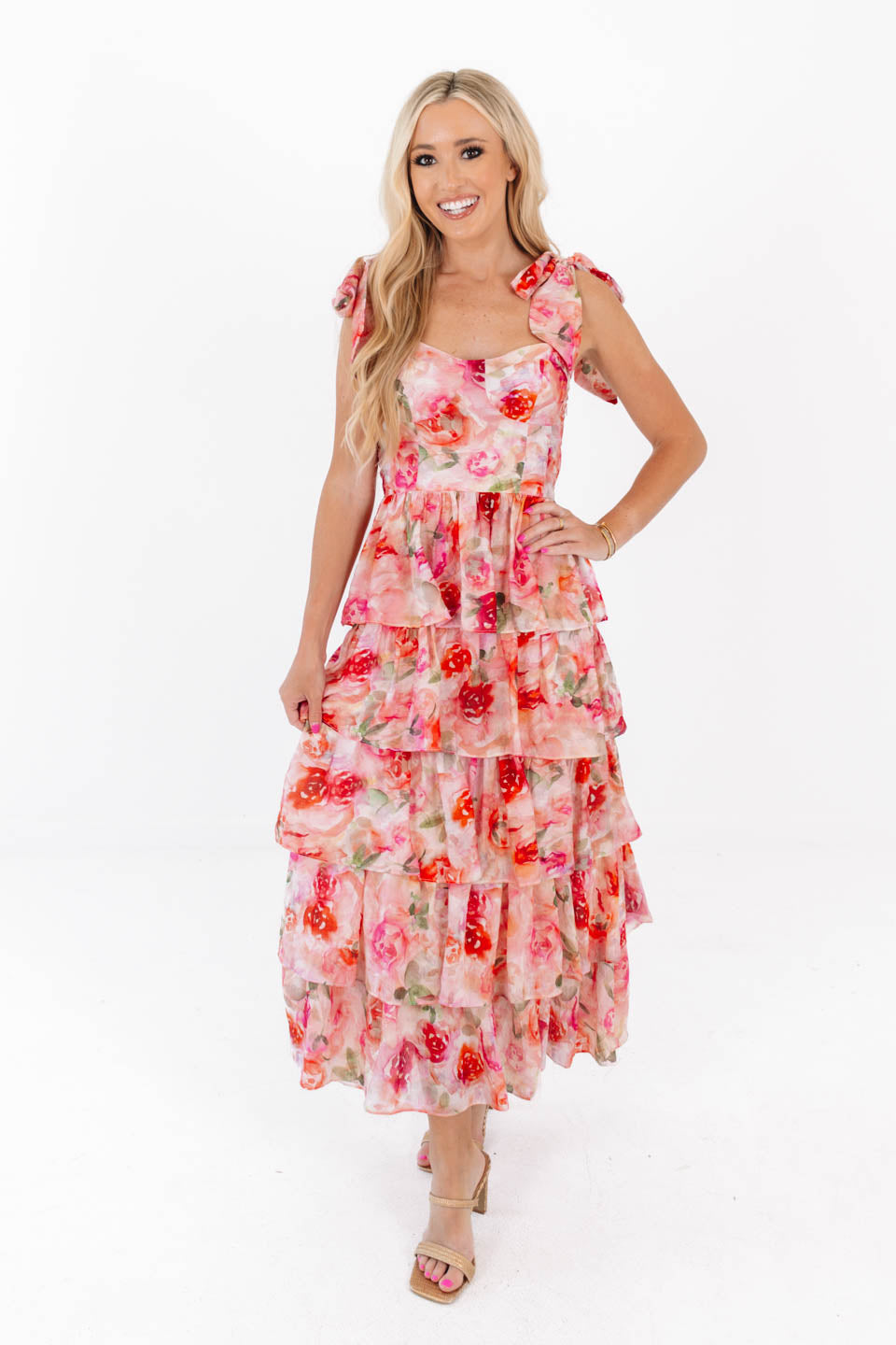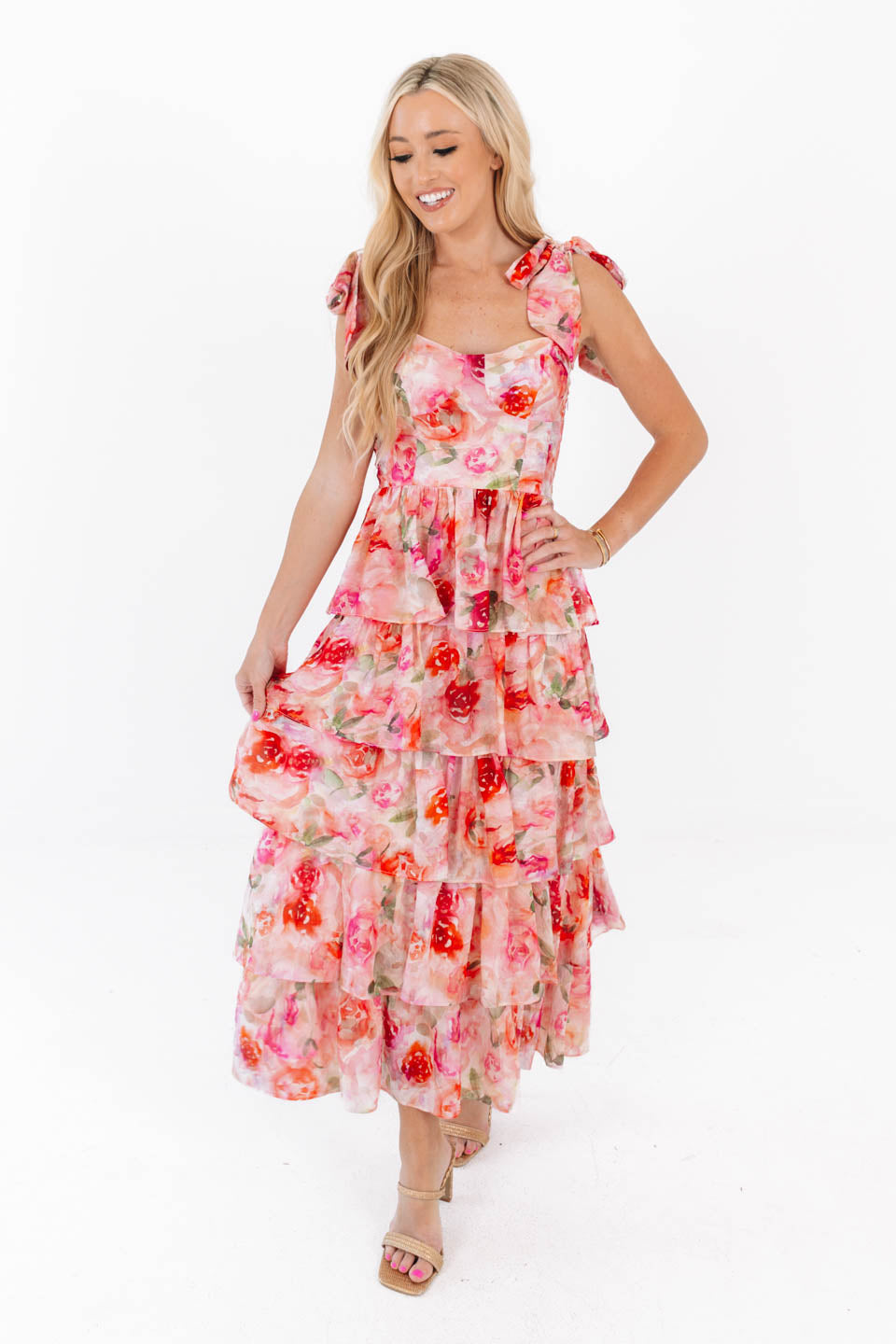 This dress is a blooming daydream with cascading ruffles and a watercolor garden of florals. The flirty tie straps and tiered skirt are made for twirling through picnics, parties, and everything in between. It’s basically a bouquet you can wear—and yes, it’s as fun as it looks!