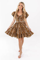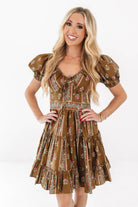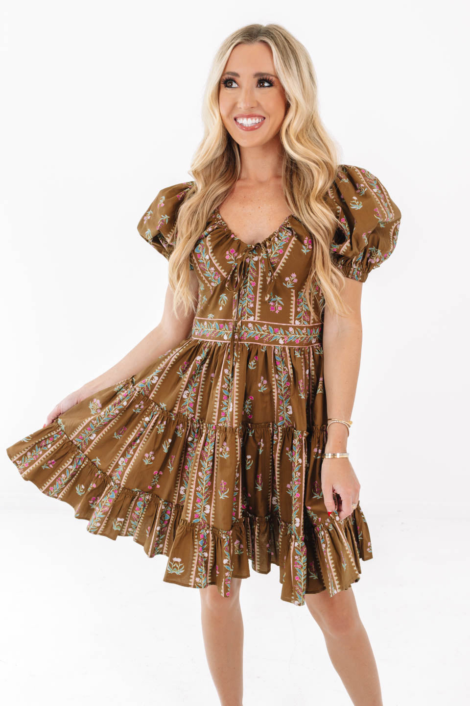 This dress is all about playful charm with its puff sleeves and flirty tiered skirt. The floral print adds just the right amount of color, making it easy to dress up or down. Whether you’re headed to brunch or a night out, this piece is ready to turn heads!