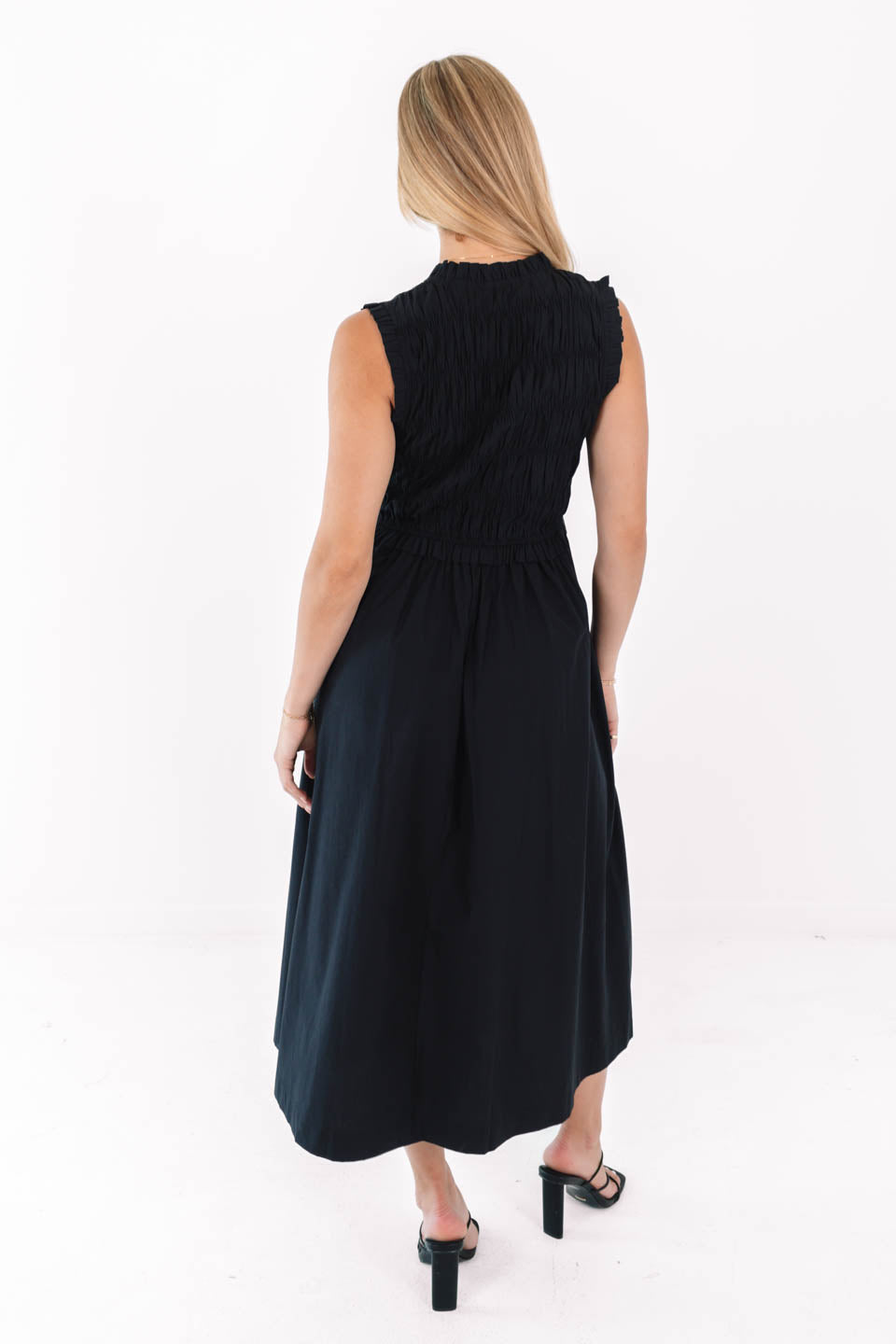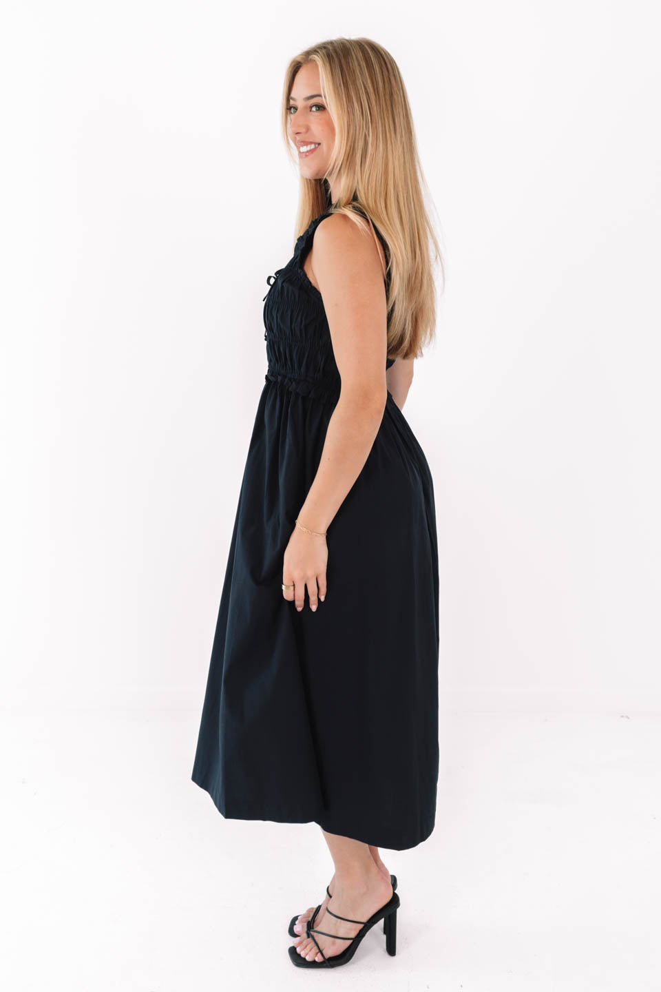 A classic black dress, but make it flirty—with a smocked bodice, subtle ruffle details, and a swishy A-line skirt! It’s the perfect mix of timeless and playful, ready to dress up or down depending on your vibe. Slip on some heels or sneakers, and you’re effortlessly chic either way.