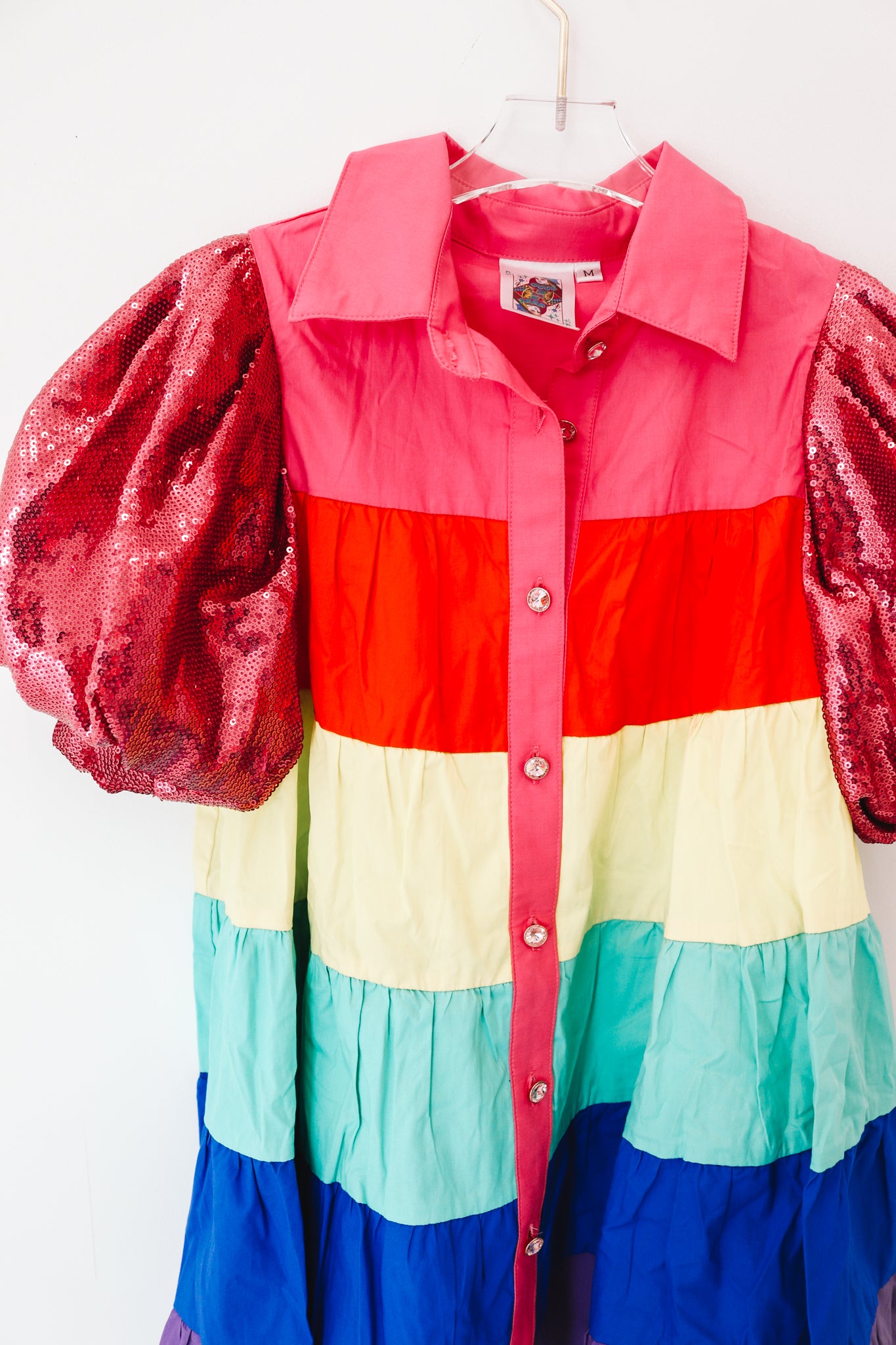 Queen Of Sparkles Tween Rainbow Stripe Dress - Rainbow