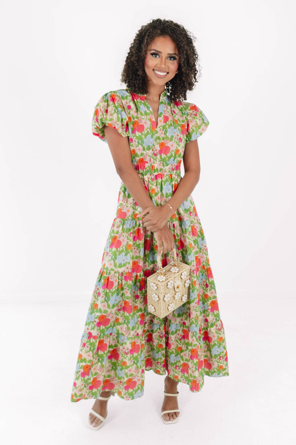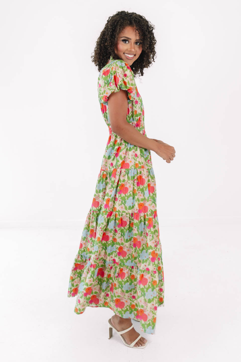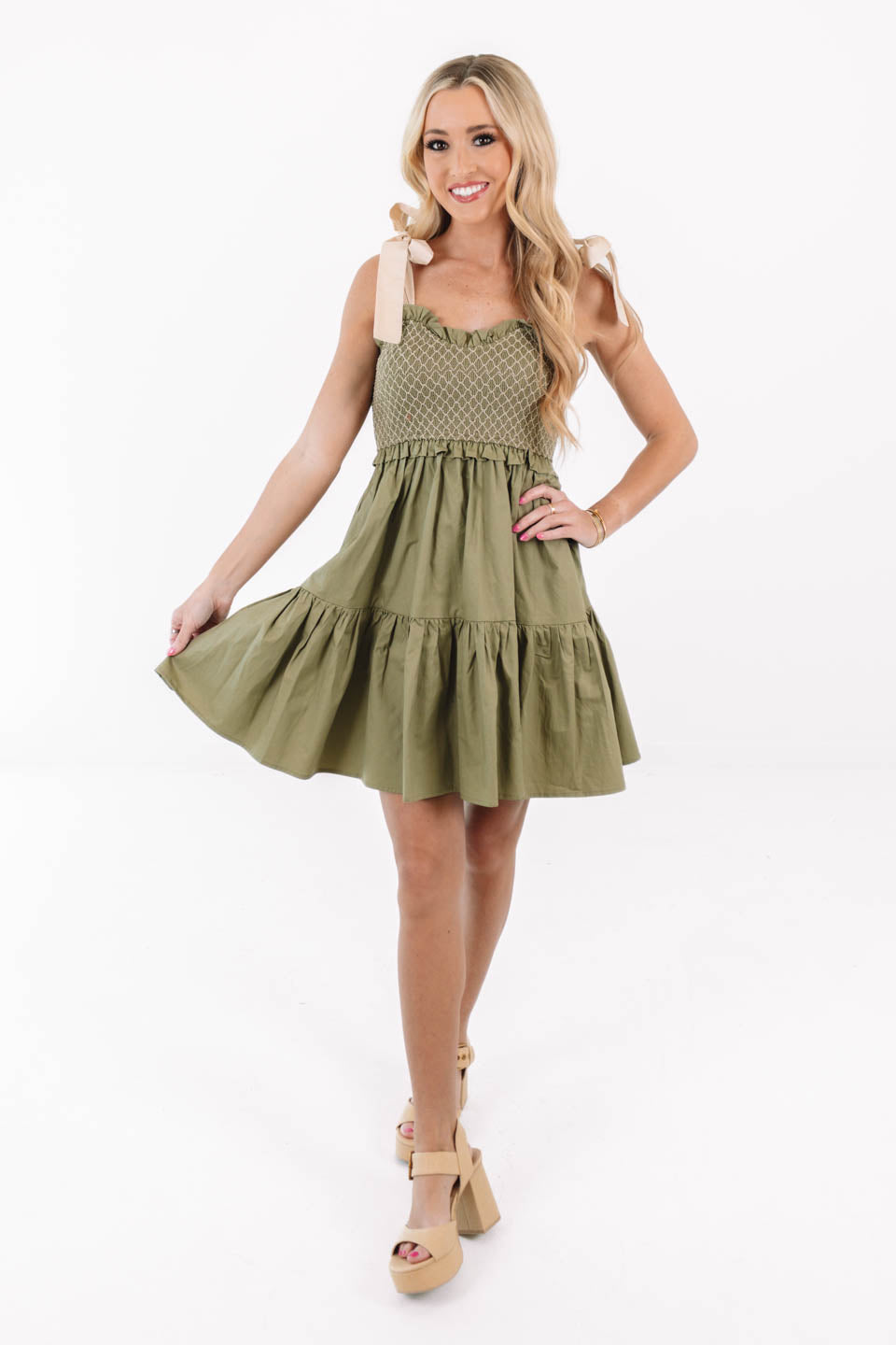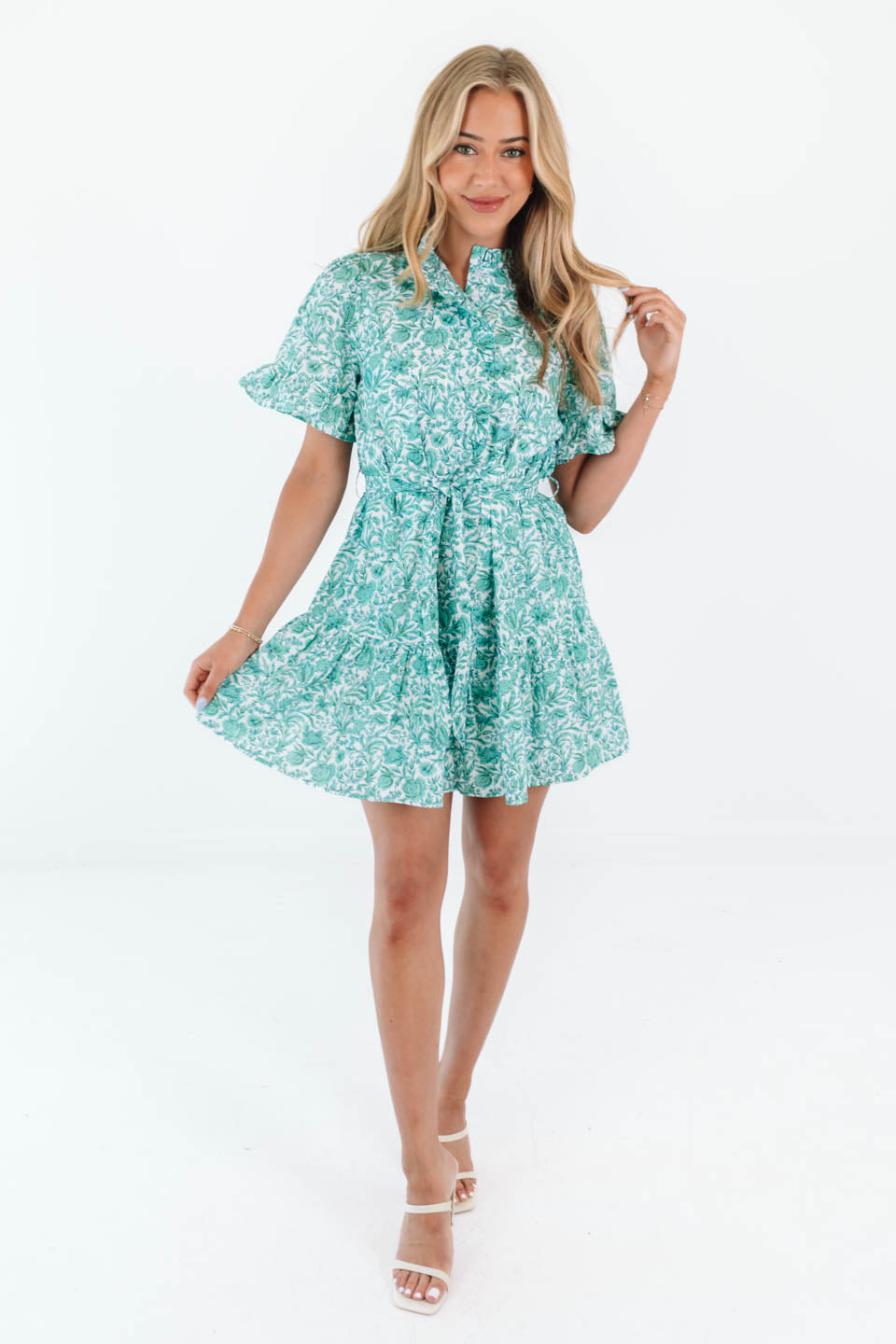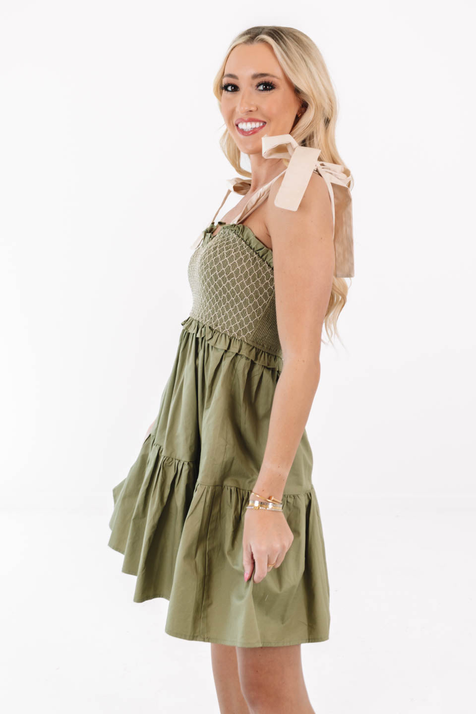 The Jordyn Long Sleeve Bow Dress - Green Plaid