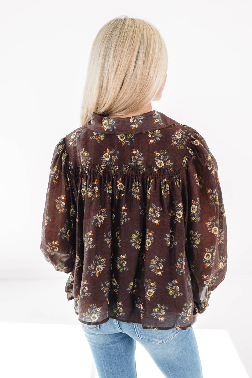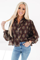 This breezy brown blouse is made for days when you want to feel effortlessly pretty. The floral print and voluminous sleeves give it a touch of whimsy that’s equal parts vintage and fresh. Style it with denim or a flowy skirt and let those sleeves do all the talking!