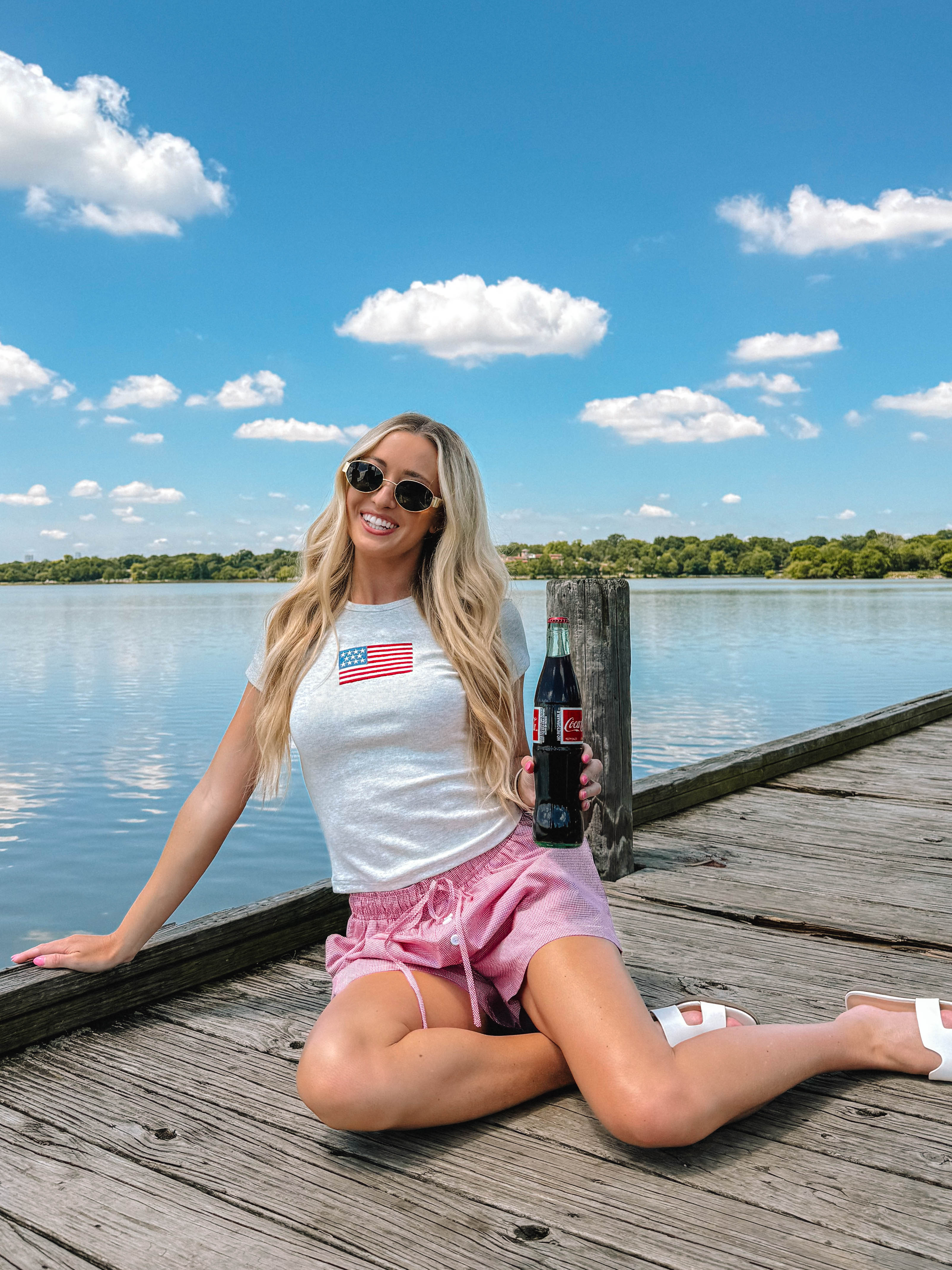 Show off your star-spangled spirit in this playful tee featuring a bold embroidered American flag front and center. With its soft heathered fabric and flattering fit, it’s the perfect piece for BBQs, fireworks, or just chillin’ in style. Pair it with denim or go full-on festive—either way, you're winning the red, white, and blue game!