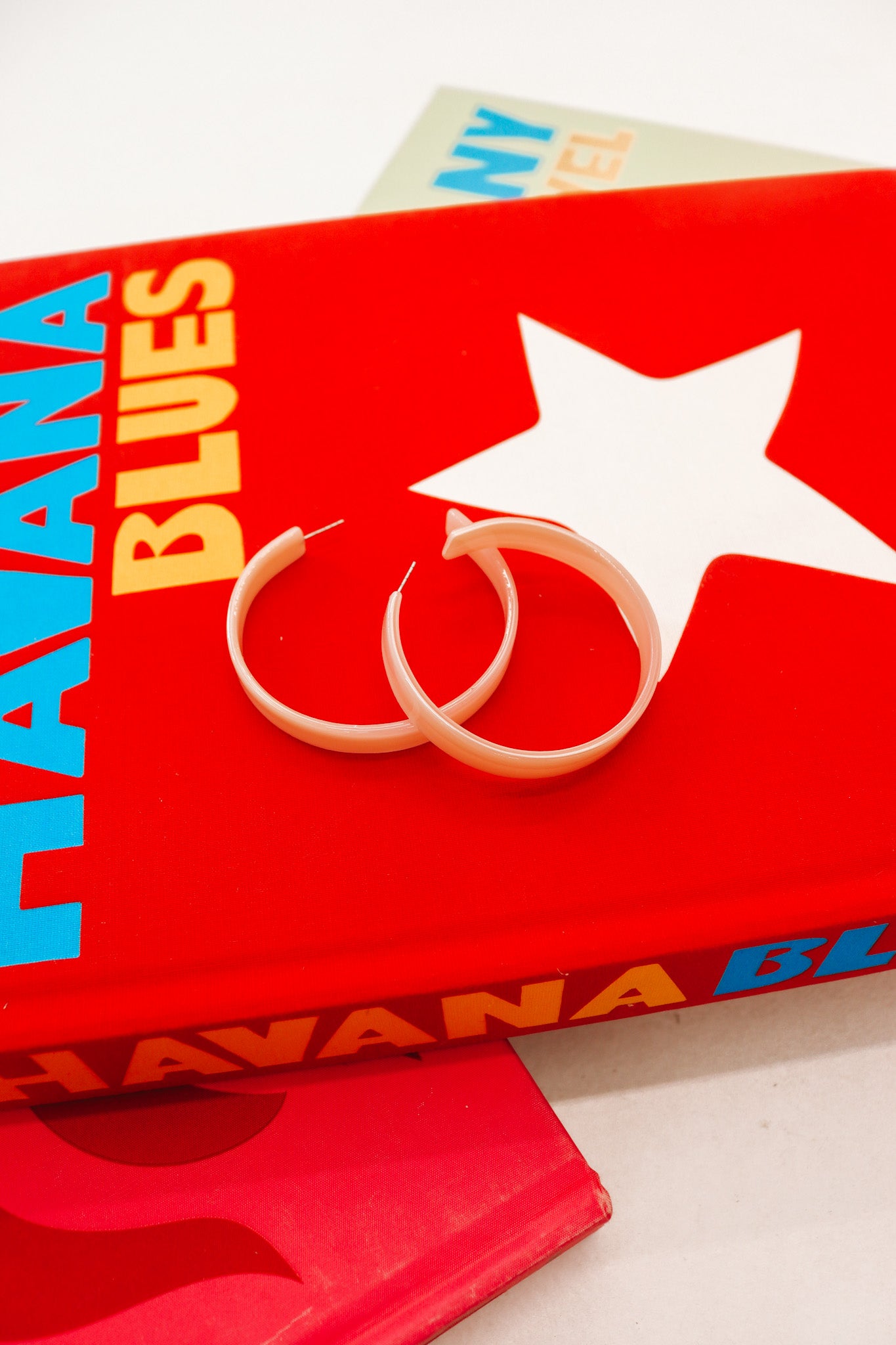 Enjoy a spin on the classic hoop earring with these acrylic cuties! This larger hoop with a post back is still lightweight on your ears, yet makes a statement that will leave you feeling beautiful!