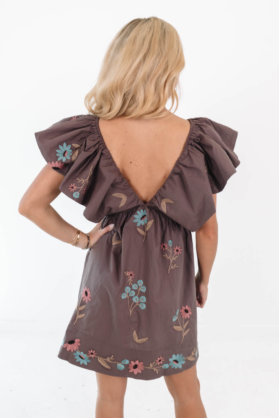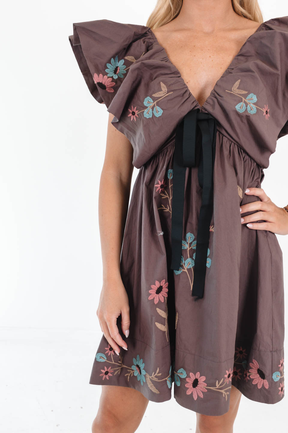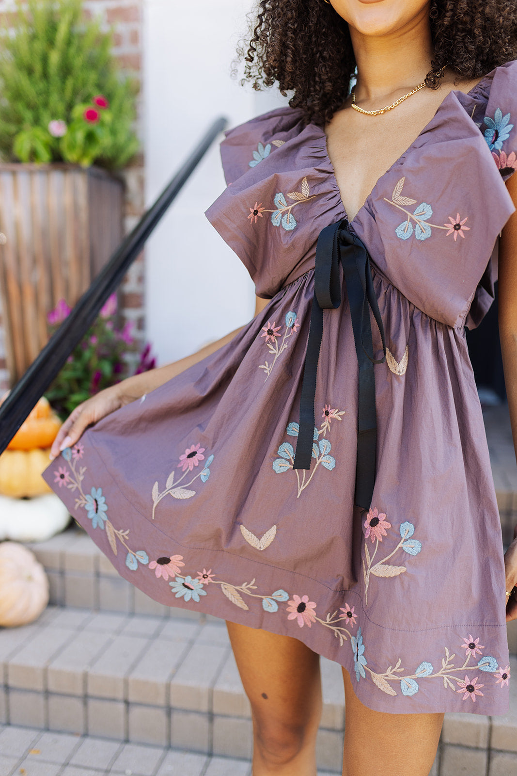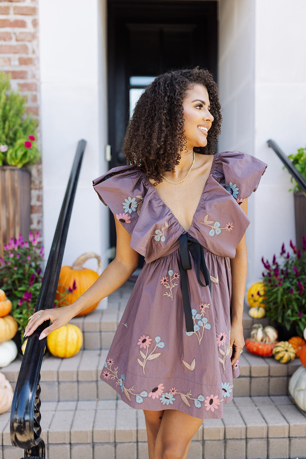 This adorable dress is a playful mix of boho and feminine charm! With its fluttery sleeves, floral embroidery, and cute black bow tie, it's perfect for twirling through an autumn day. The light, breezy fabric and fun details make it a must-have for a carefree, stylish vibe!