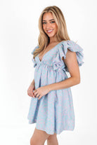 The Closer Than Ever Dress is the perfect summer mini! Whether you have a fun date planned or are looking for the perfect back to school dress, this blue floral dress with a ruffle sleeve detail is perfect for the occasion! Pair with your favorite shoes to complete the look.