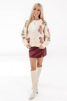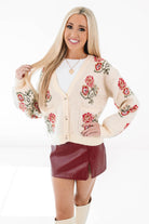 This cozy cream cardigan is blooming with charm thanks to its sweet red floral embroidery! With its slouchy sleeves and vintage-inspired vibe, it’s the perfect layer for everything from coffee runs to countryside strolls. Soft, cheerful, and effortlessly cute—it’s basically a warm hug you can wear!