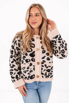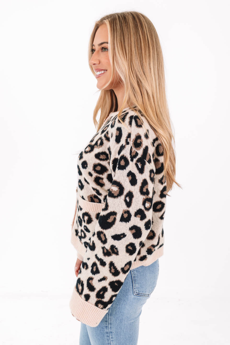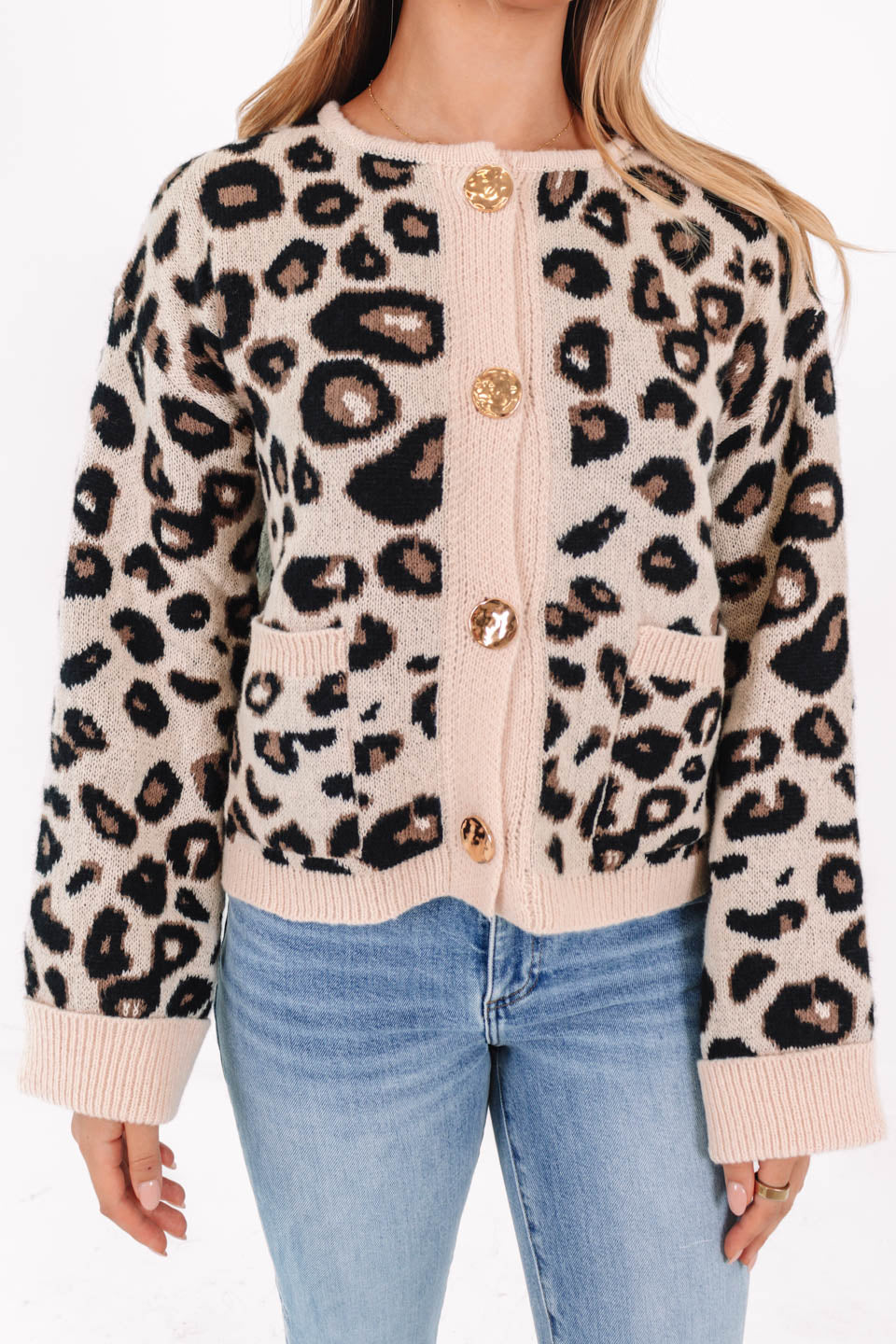 This leopard print sweater is serving cozy with a side of fierce! The bold pattern and shiny gold buttons make it anything but basic, while the cropped fit keeps it effortlessly chic. Perfect for when you want to stay warm but still let your wild side shine.