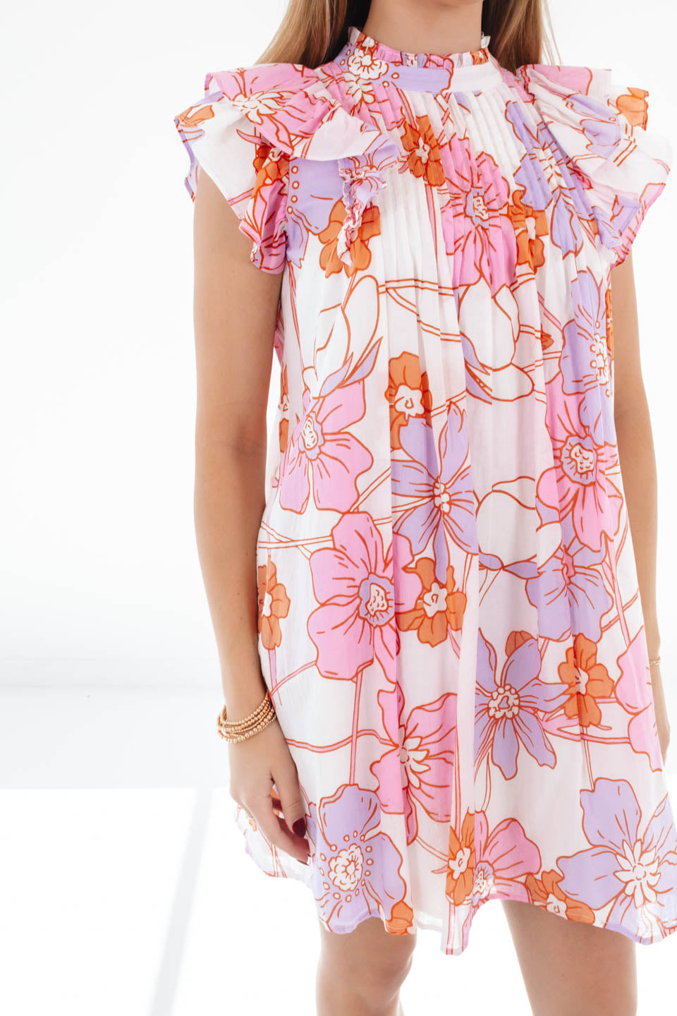 This playful short dress features pleated detailing and ruffle cap sleeves, adding a touch of charm and movement. With its flowy silhouette and convenient pockets, it's both stylish and practical—perfect for casual outings or a laid-back day of fun!