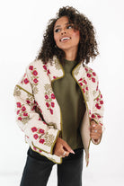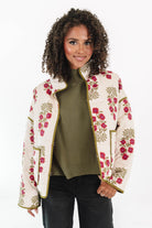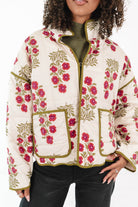 This quilted jacket brings all the fall vibes with its earthy olive trim and warm floral print. It’s the perfect layer for crisp pumpkin-patch strolls or cozy coffee runs. Equal parts comfy and charming, it’ll be your go-to piece for those golden autumn days.