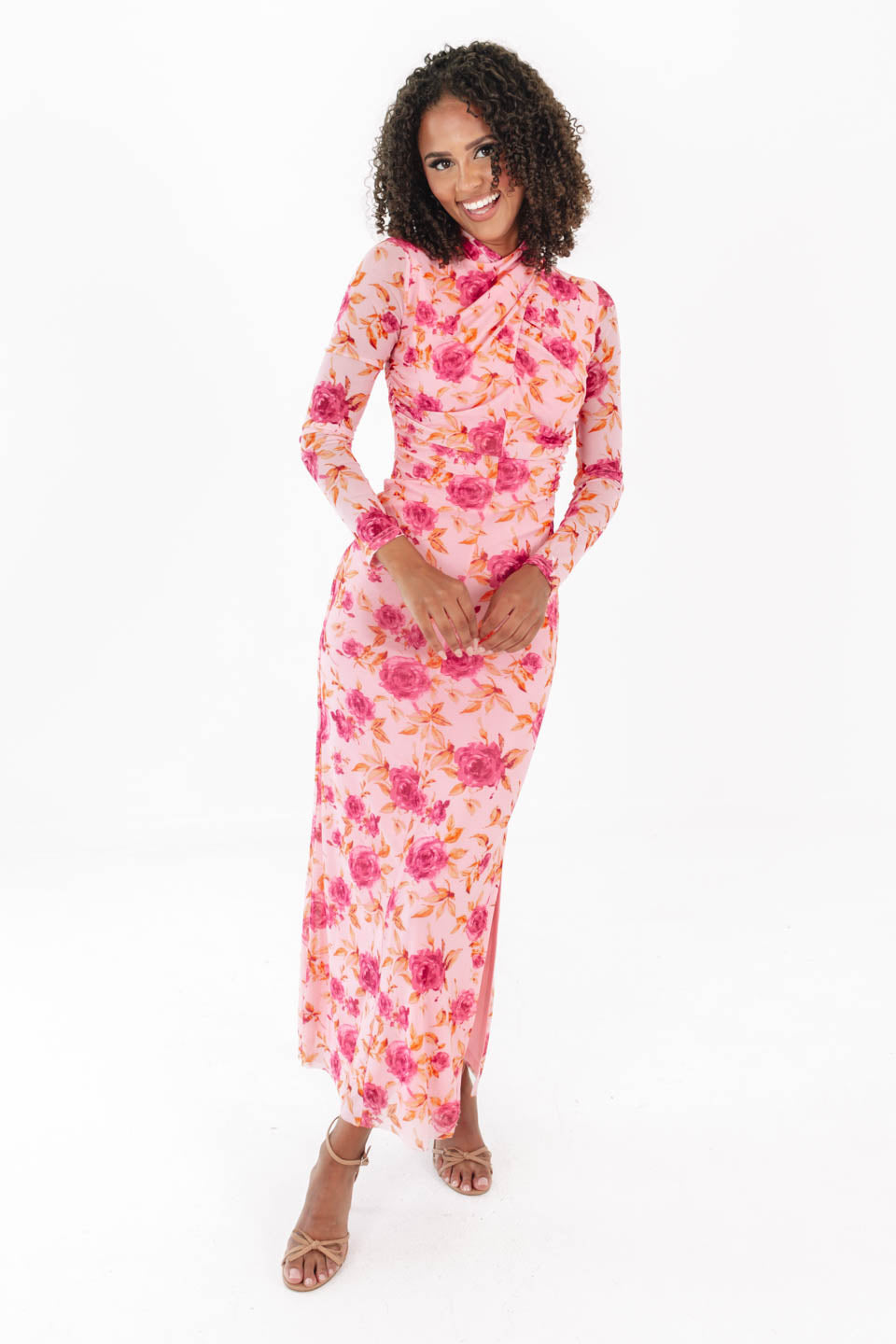 This dreamy floral number is like stepping into a secret garden at golden hour. With its sleek silhouette, high neckline, and romantic rose print, it's equal parts elegance and allure. Perfect for everything from rooftop cocktails to moonlit strolls!