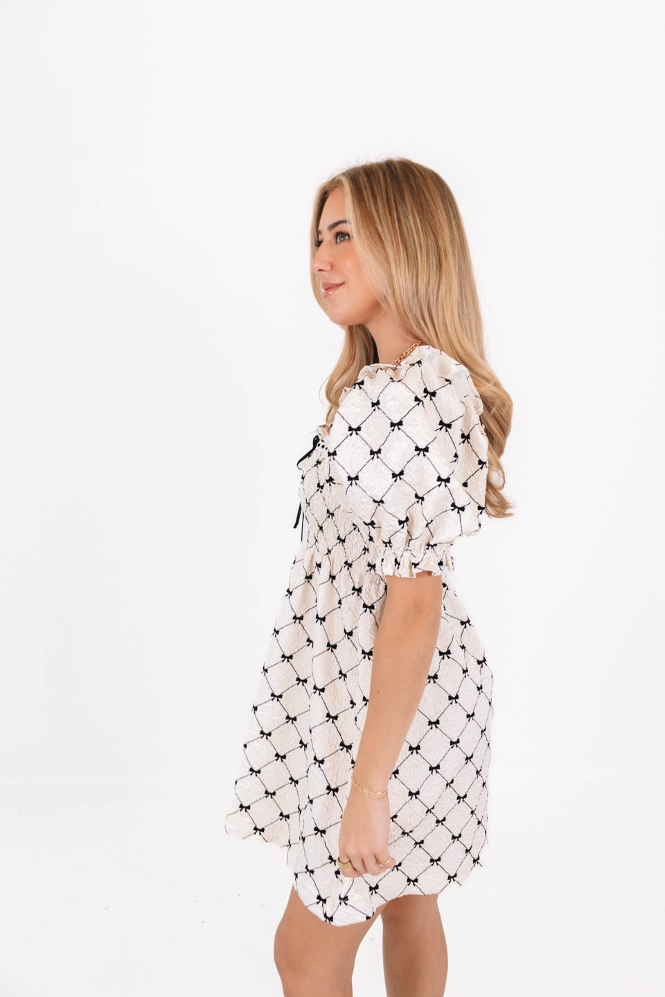 This dress is the ultimate holiday charm in a trendy ivory bow print that’s perfect for festive gatherings! With its adorable puff sleeves and playful, flowy skirt, it’s both chic and cozy for winter celebrations. Whether you're under the stars or the mistletoe, this dress is ready to make you the it girl of the season!