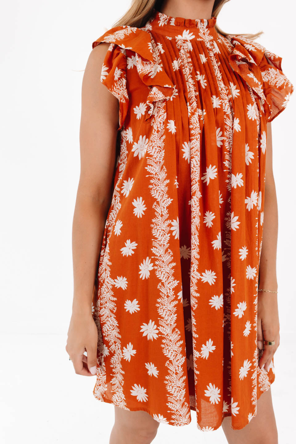 The Aubrey Belted Button Up Midi Dress - Burnt Orange