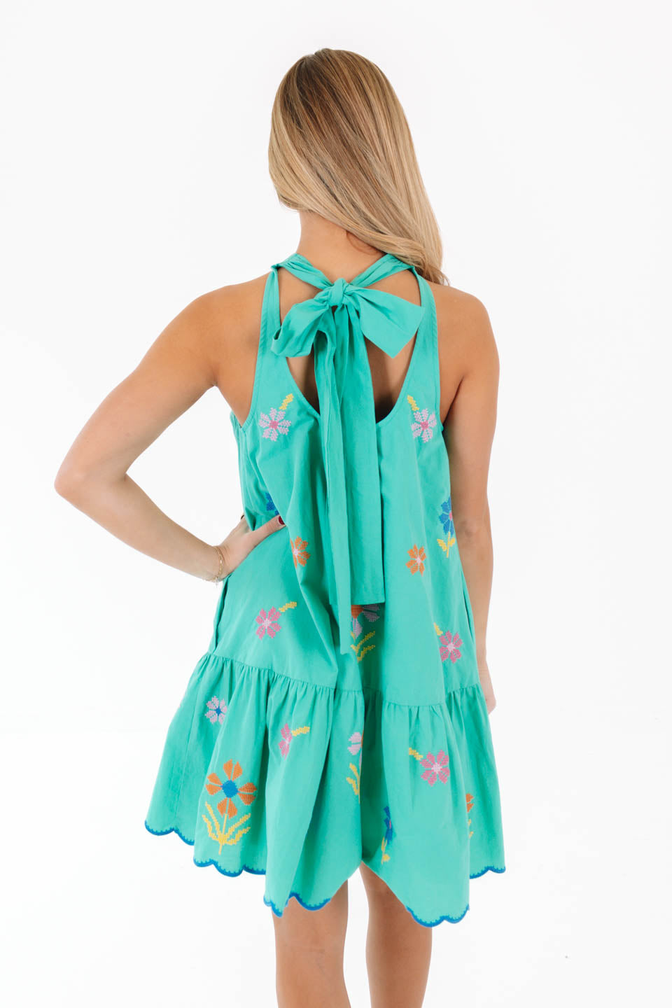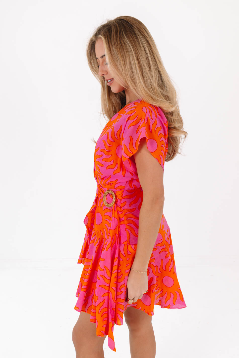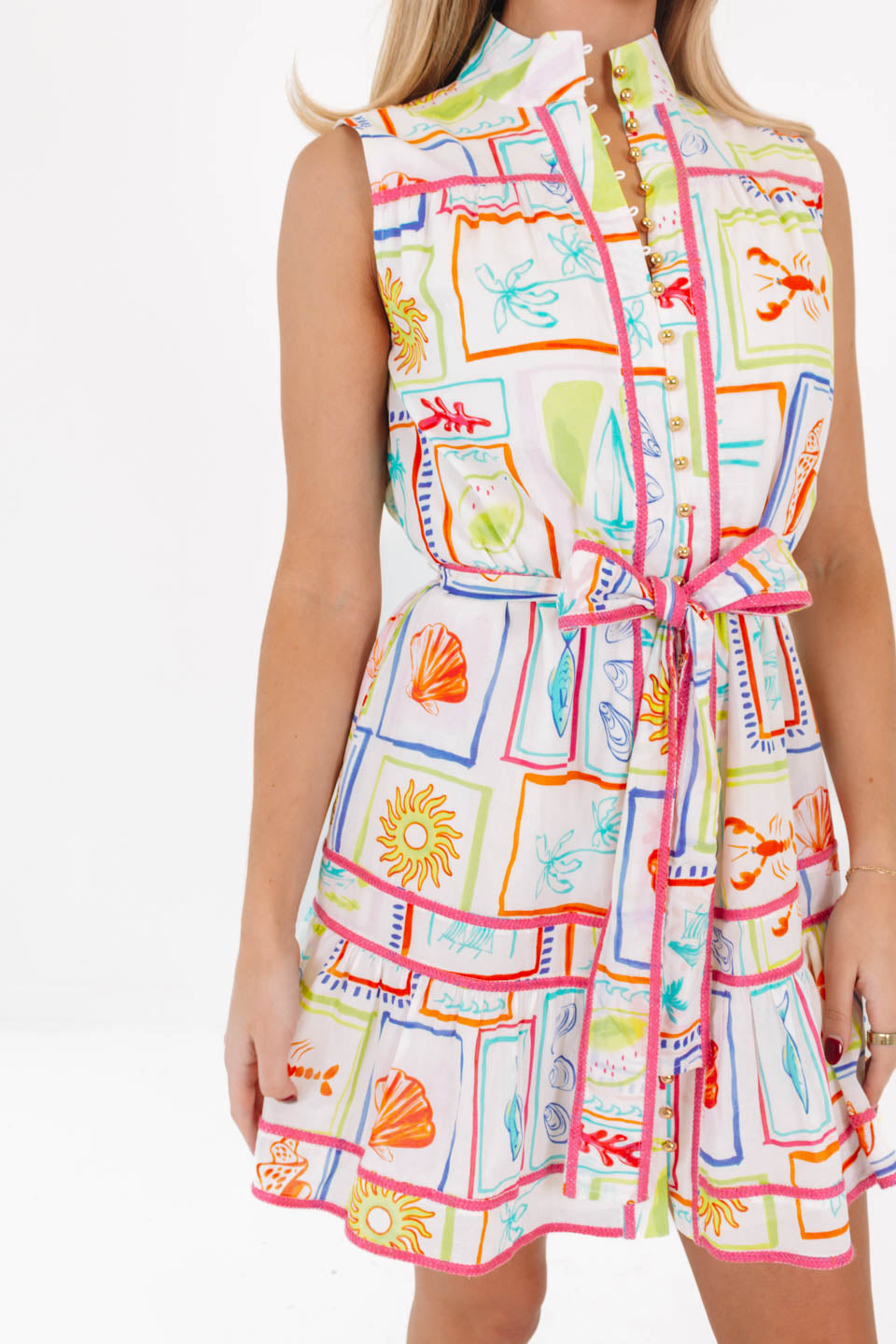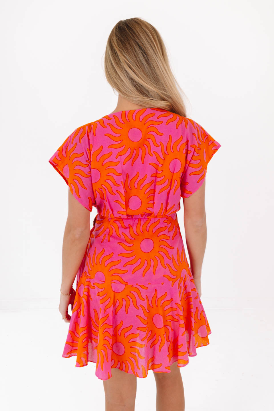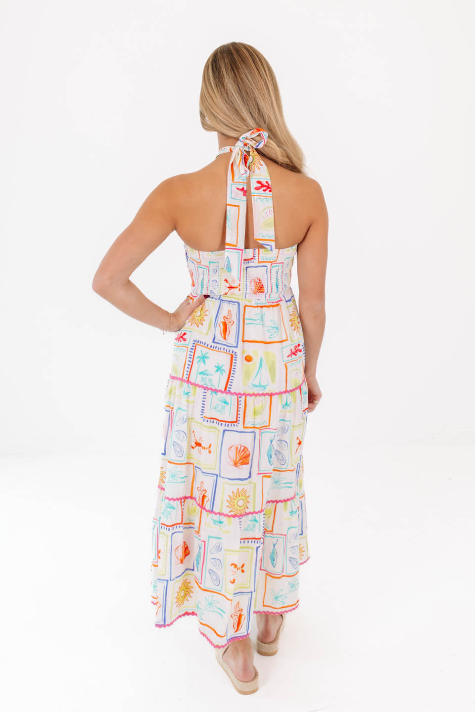 The Mara Ric Rac Tie Strap Midi Dress - Hot Pink