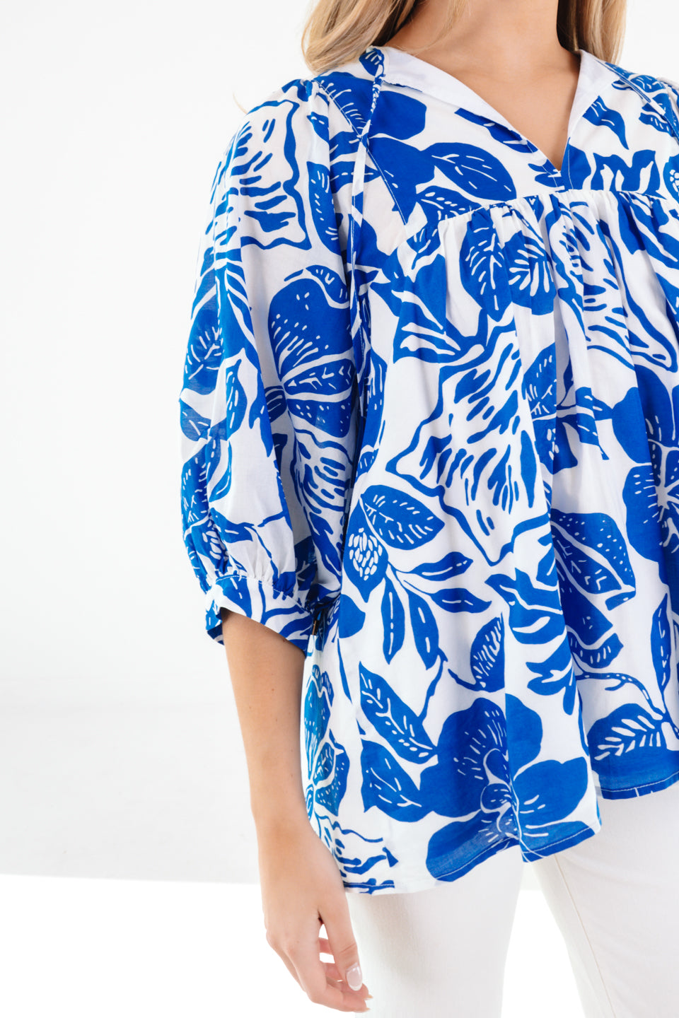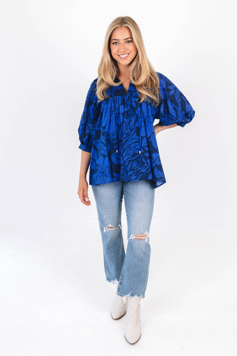 The Stevie Puff Sleeve Tunic - Navy/Blue