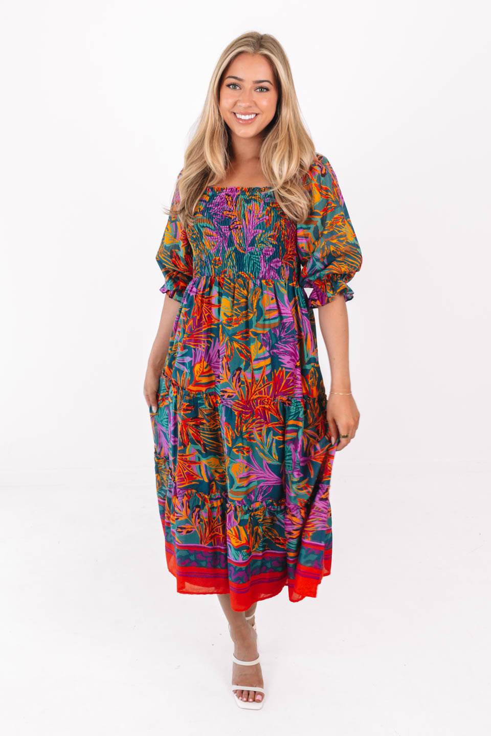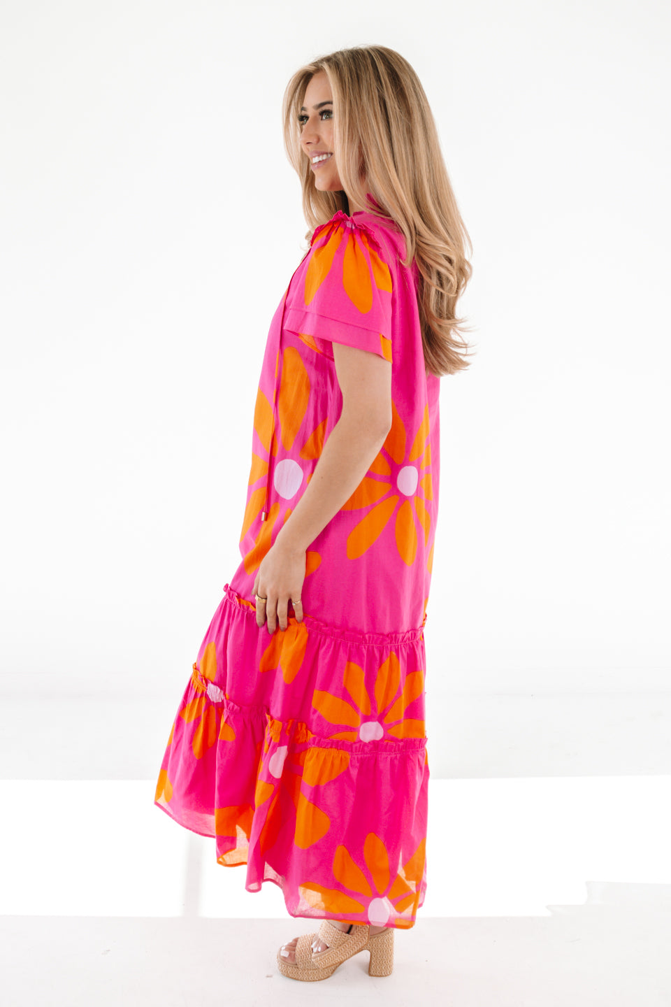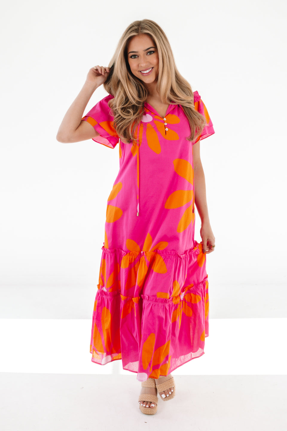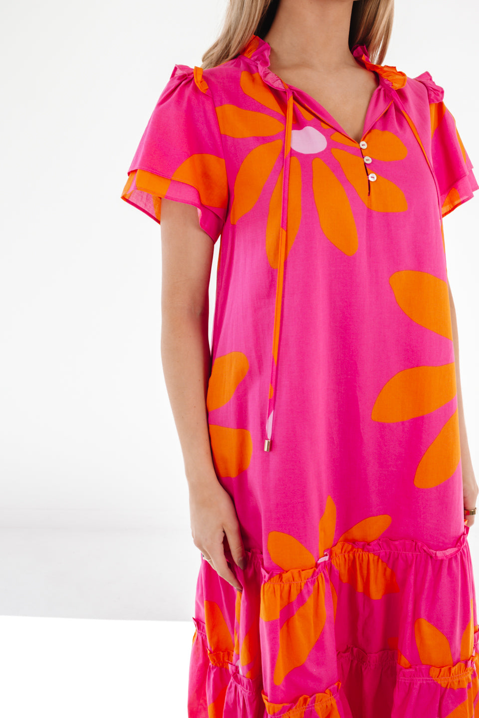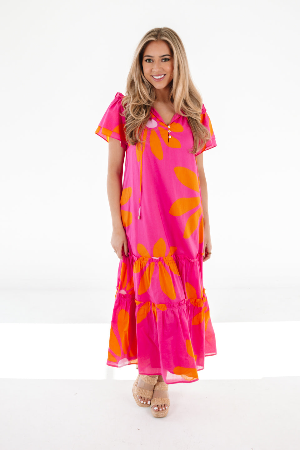The Maui Ruffle Sleeve Midi Dress - Pink