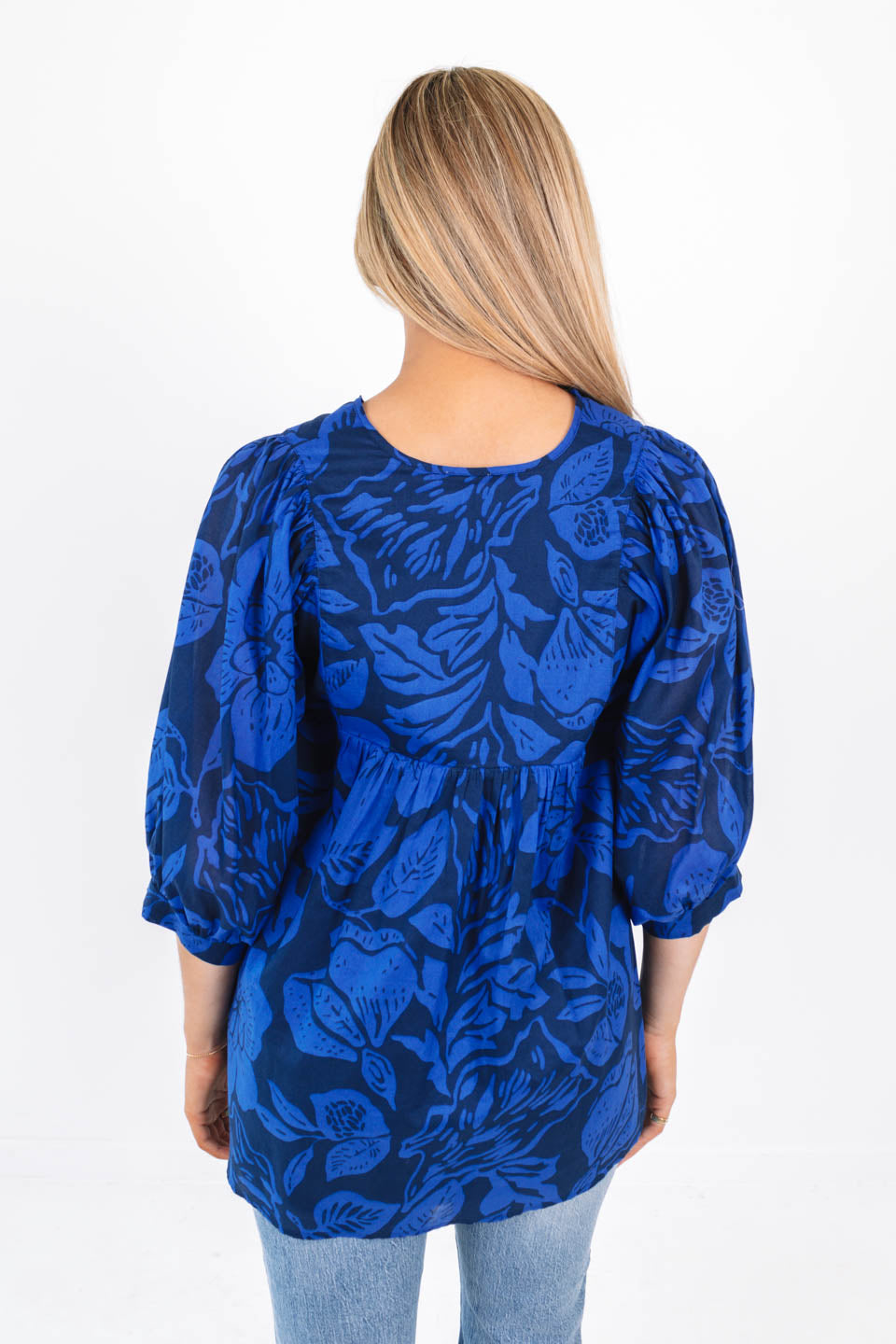 The Stevie Puff Sleeve Tunic - Navy/Blue