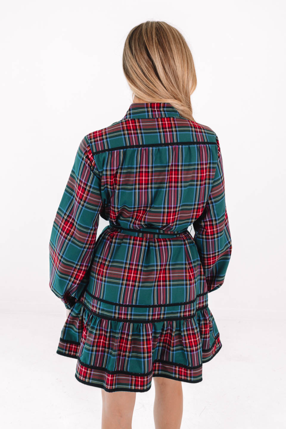 The Hollin Long Sleeve Tie Dress - Red Plaid