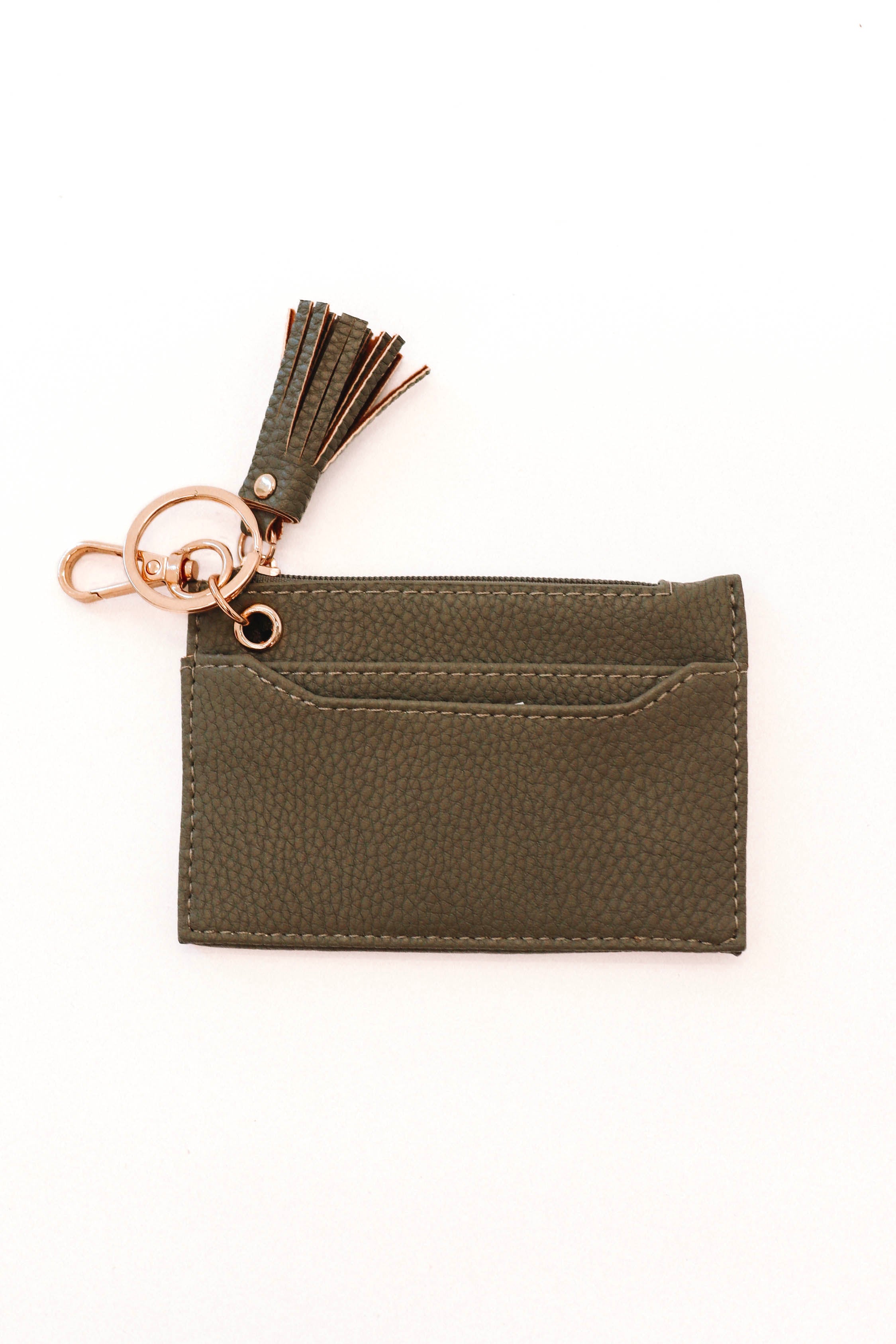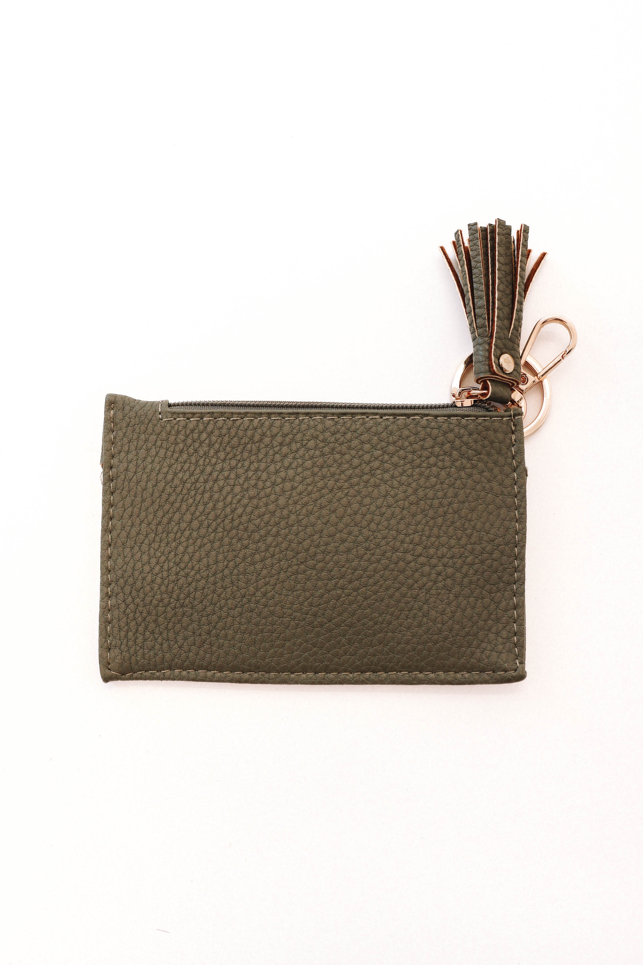Cartera con llavero de piel granulada - Salvia