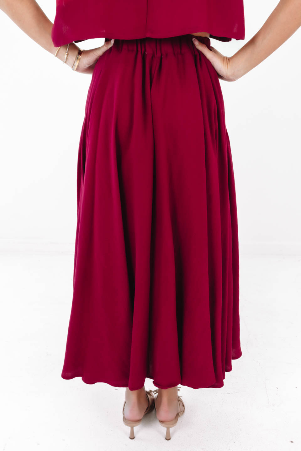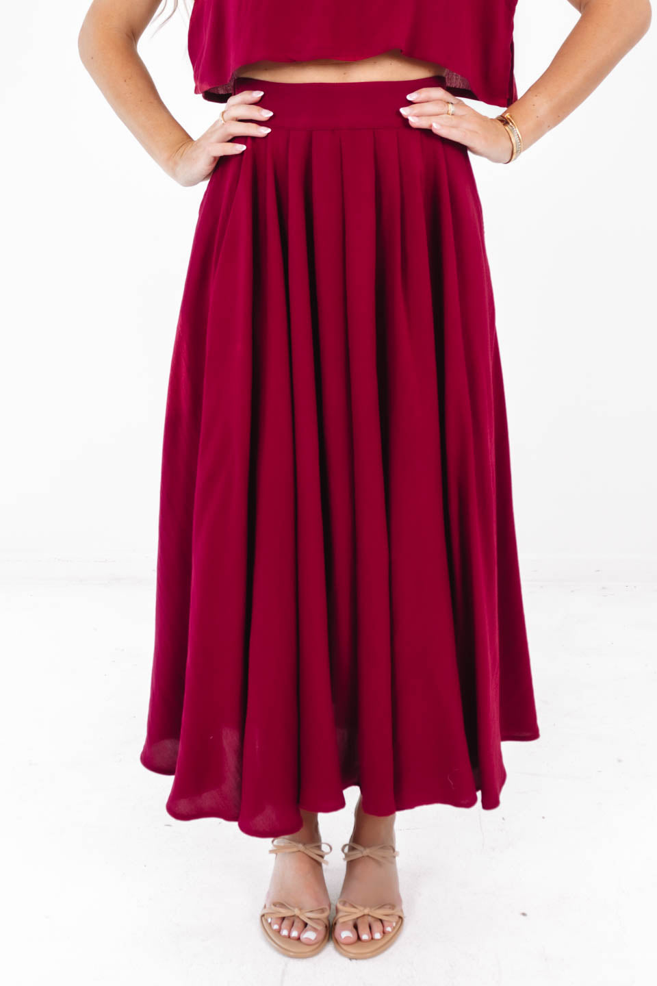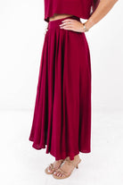 Twirl into the spotlight with this flowy burgundy midi skirt that moves with effortless grace. The pleated design adds just the right amount of flair, making it a chic go-to for both casual strolls and dressed-up nights. It's comfy, classic, and ready to dance the night away!