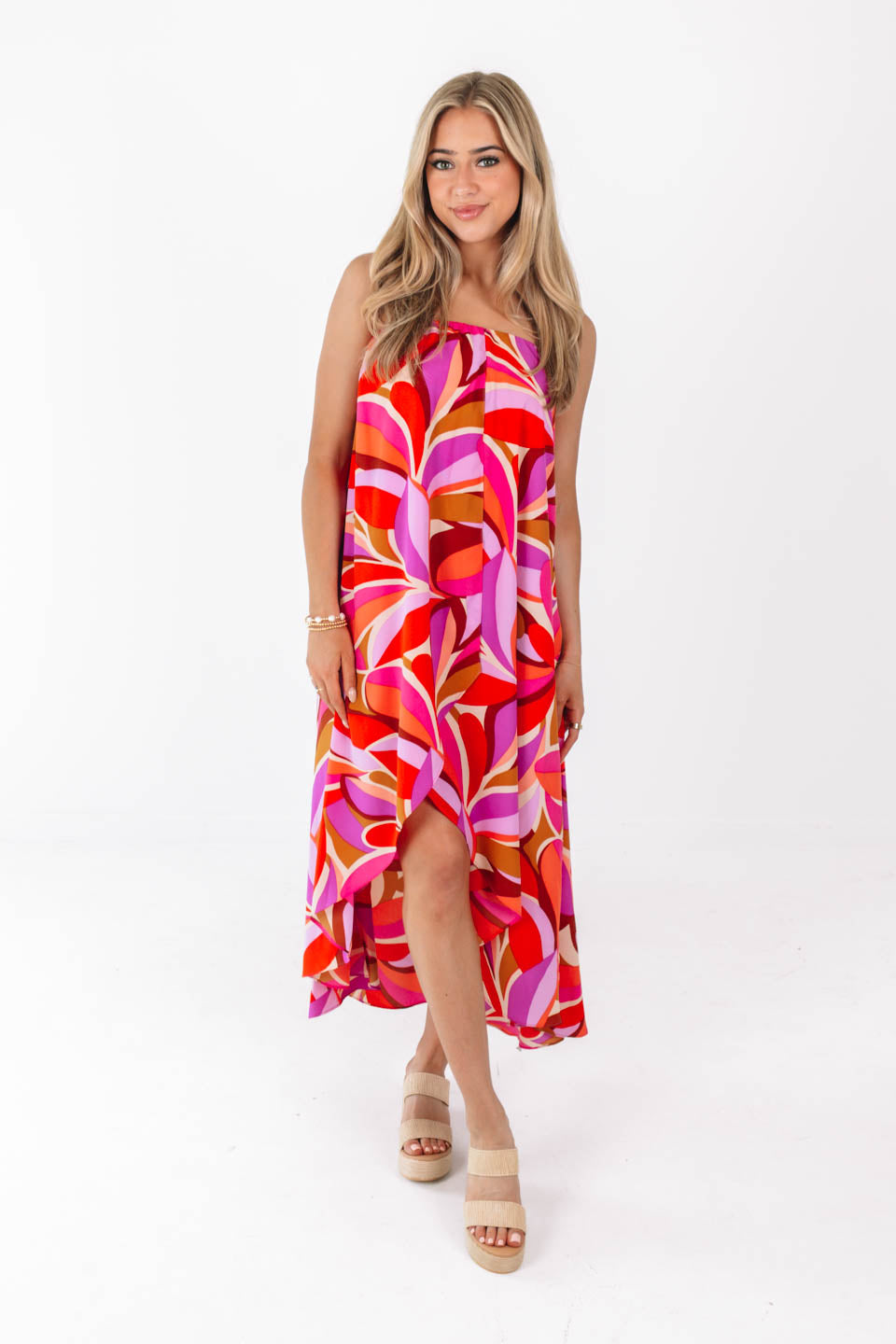 The Maui Ruffle Sleeve Midi Dress - Pink