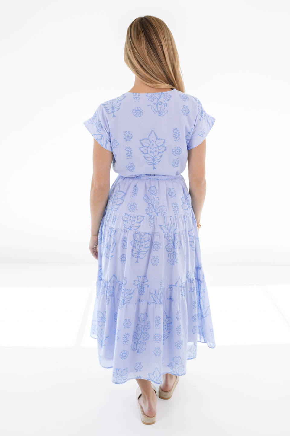 The Sienna V-Neck Button Up Midi Dress - Blue