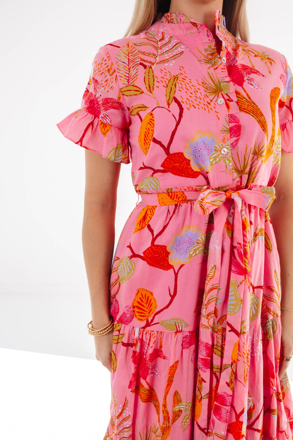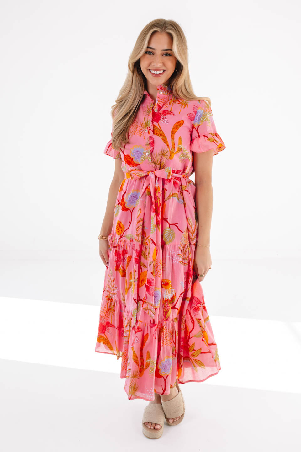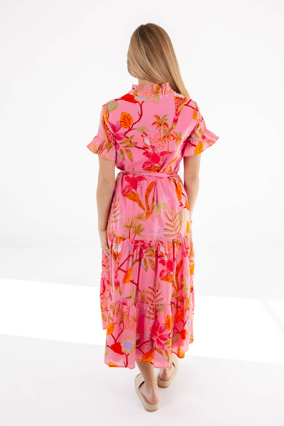 The Maui Ruffle Sleeve Midi Dress - Pink