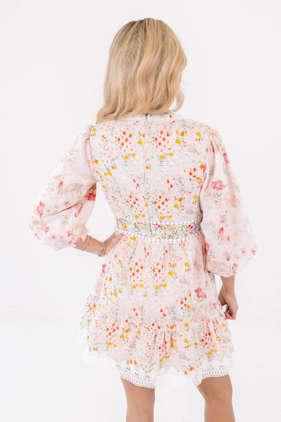 This dreamy floral mini dress is like a garden party wrapped in lace, featuring a deep V-neck and playful puff sleeves for the perfect mix of sweet and sassy. The pastel hues and intricate embroidery give it a whimsical, boho-chic vibe that’s made for twirling under the sun. Whether you're strolling through a summer festival or sipping rosé at brunch, this dress is your ticket to effortless elegance!