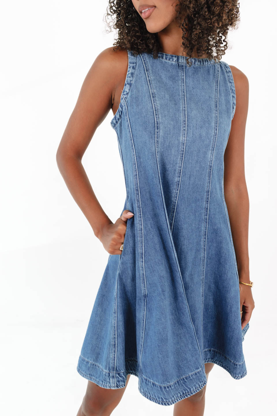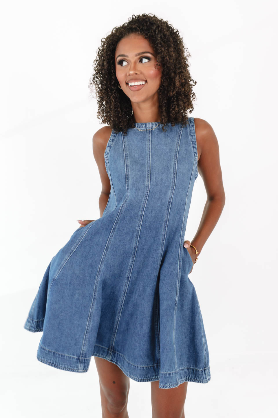 This denim dress is a total throw-on-and-go superstar, perfect for casual days with a touch of cool! Its fit-and-flare silhouette gives you that effortless shape while keeping things comfy and chic. Pair it with sneakers, boots, or a bold bag for instant street-style vibes!