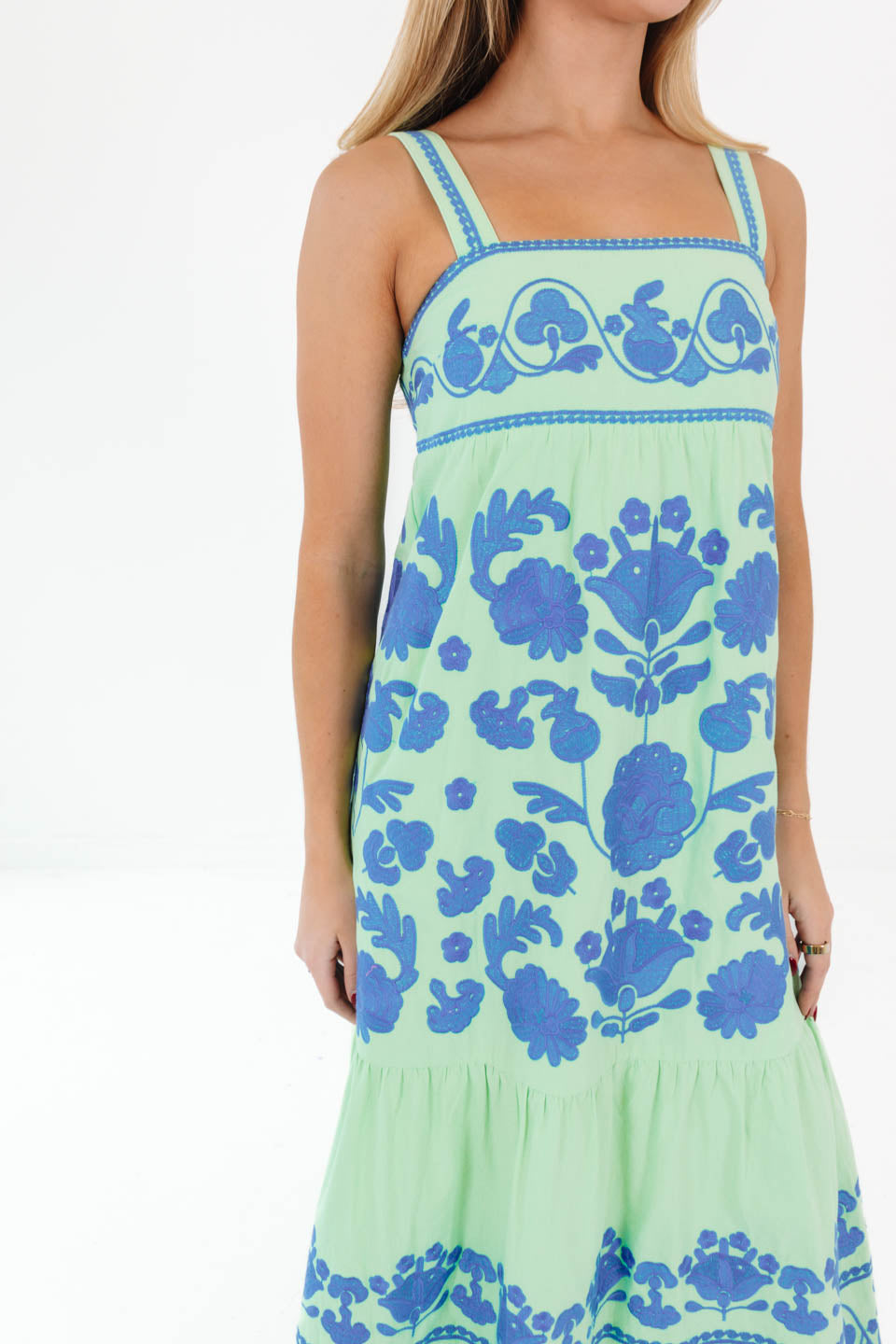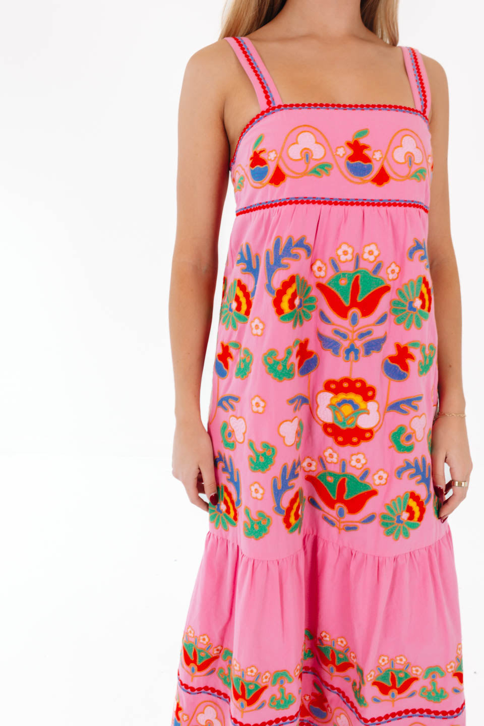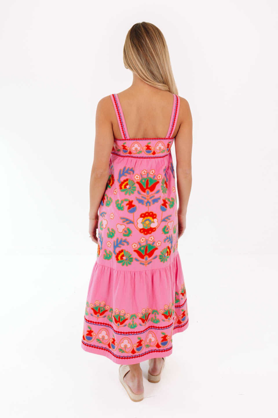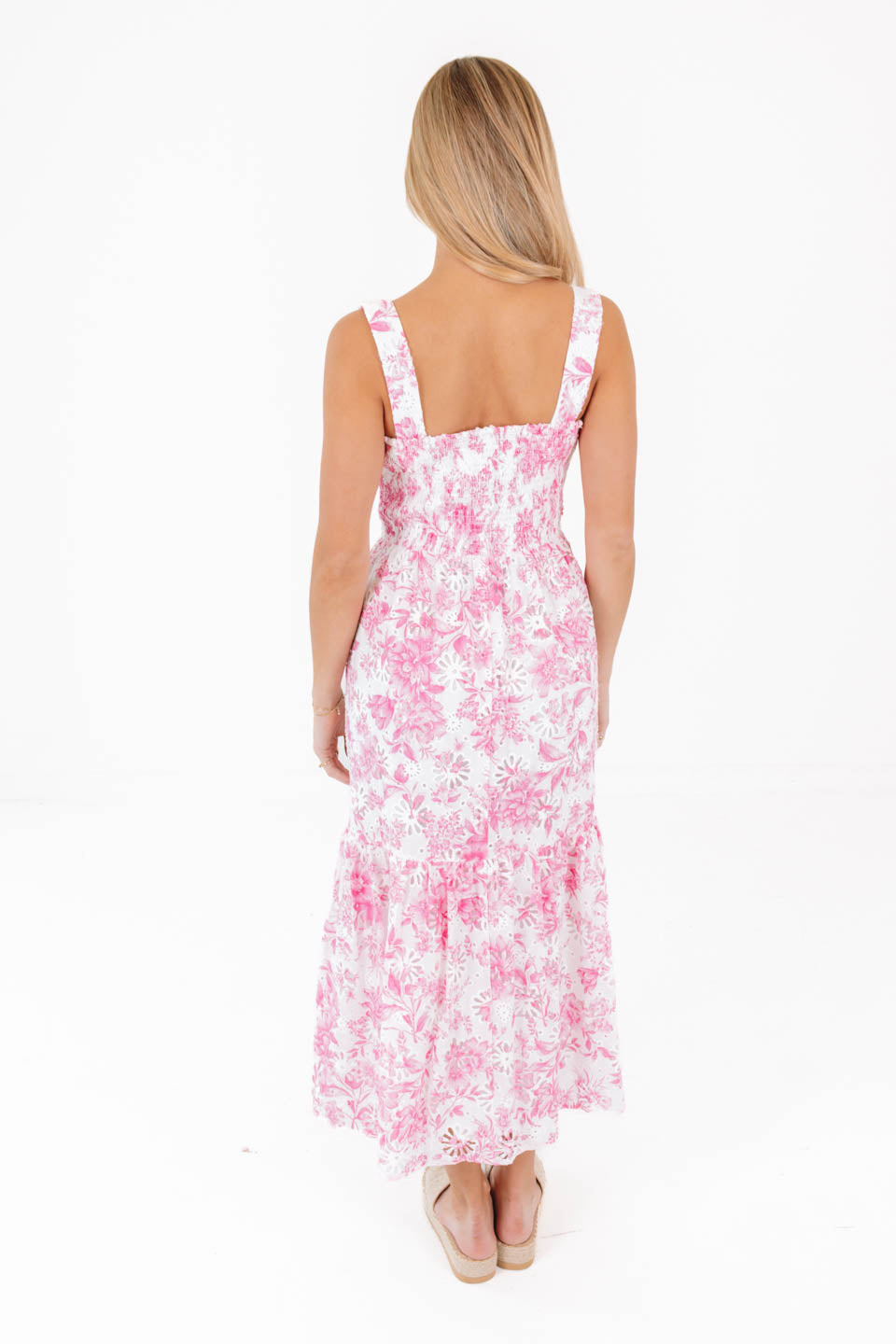 The Claire Eyelet Button Up Midi Dress - White/Pink